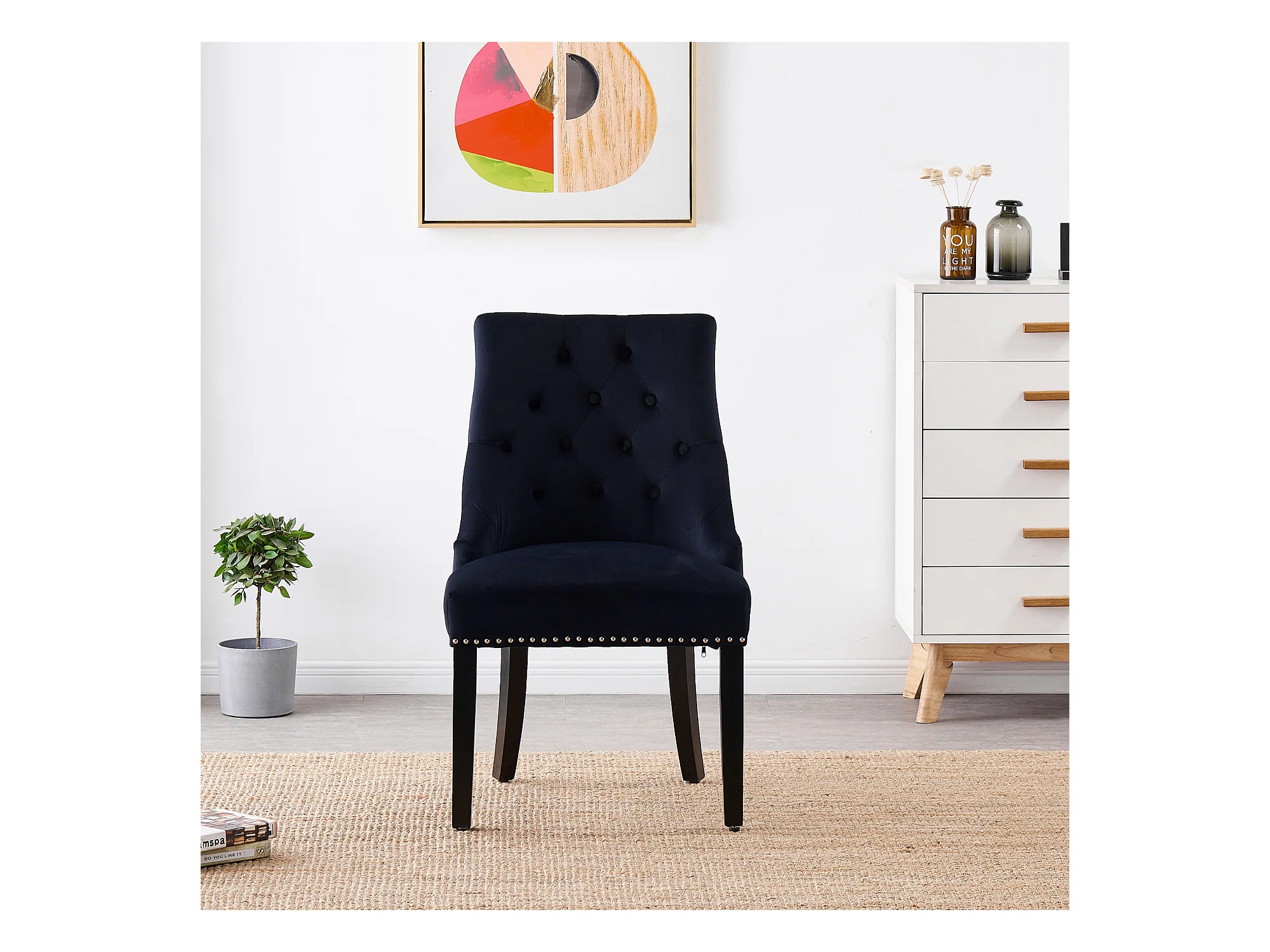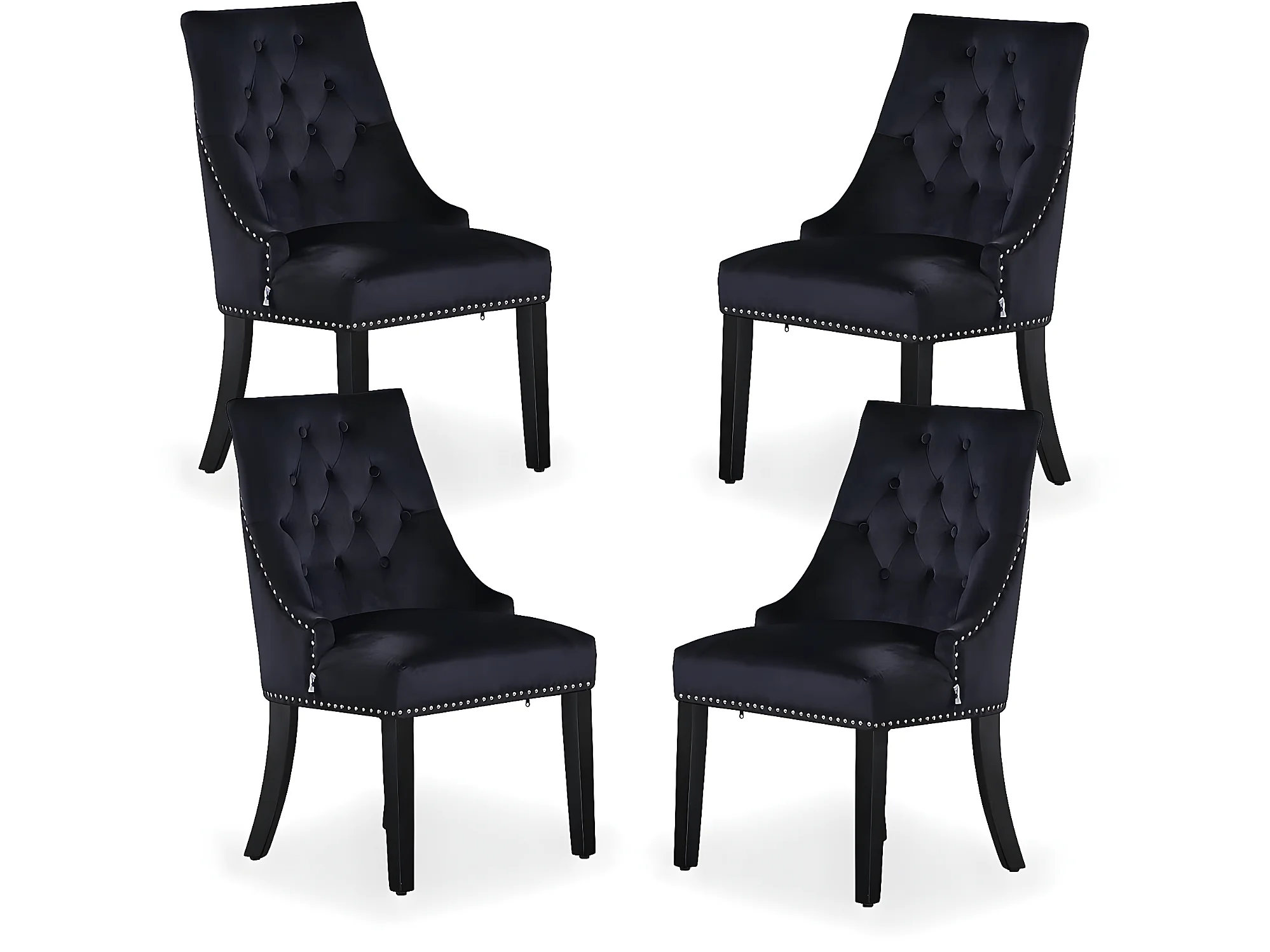 Set mit 4 Windsor-Esszimmerstühlen – Plüsch-Samtpolsterung und stabile Beine aus Massivholz – perfekt für Ihr Esszimmer und Wohnzimmer – Schwarz