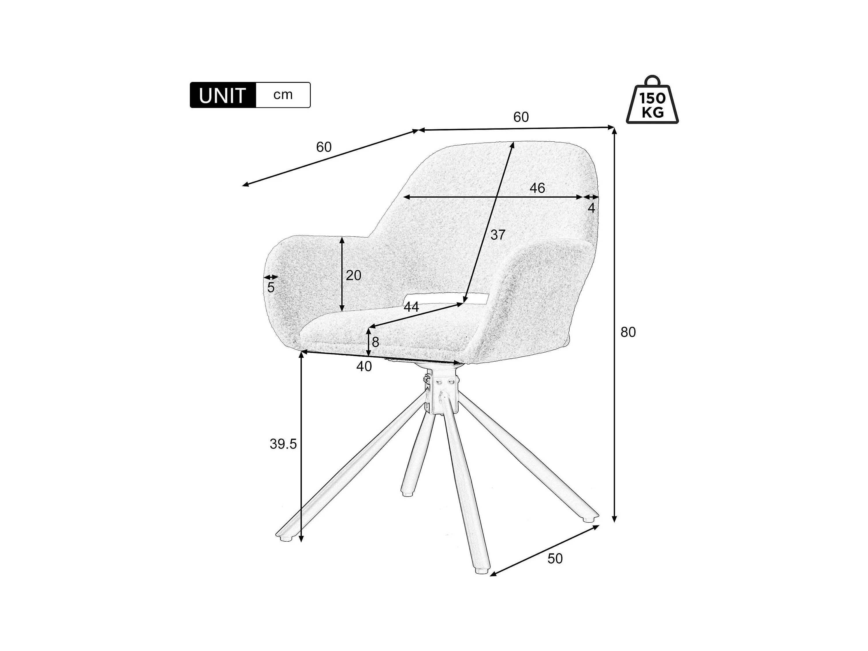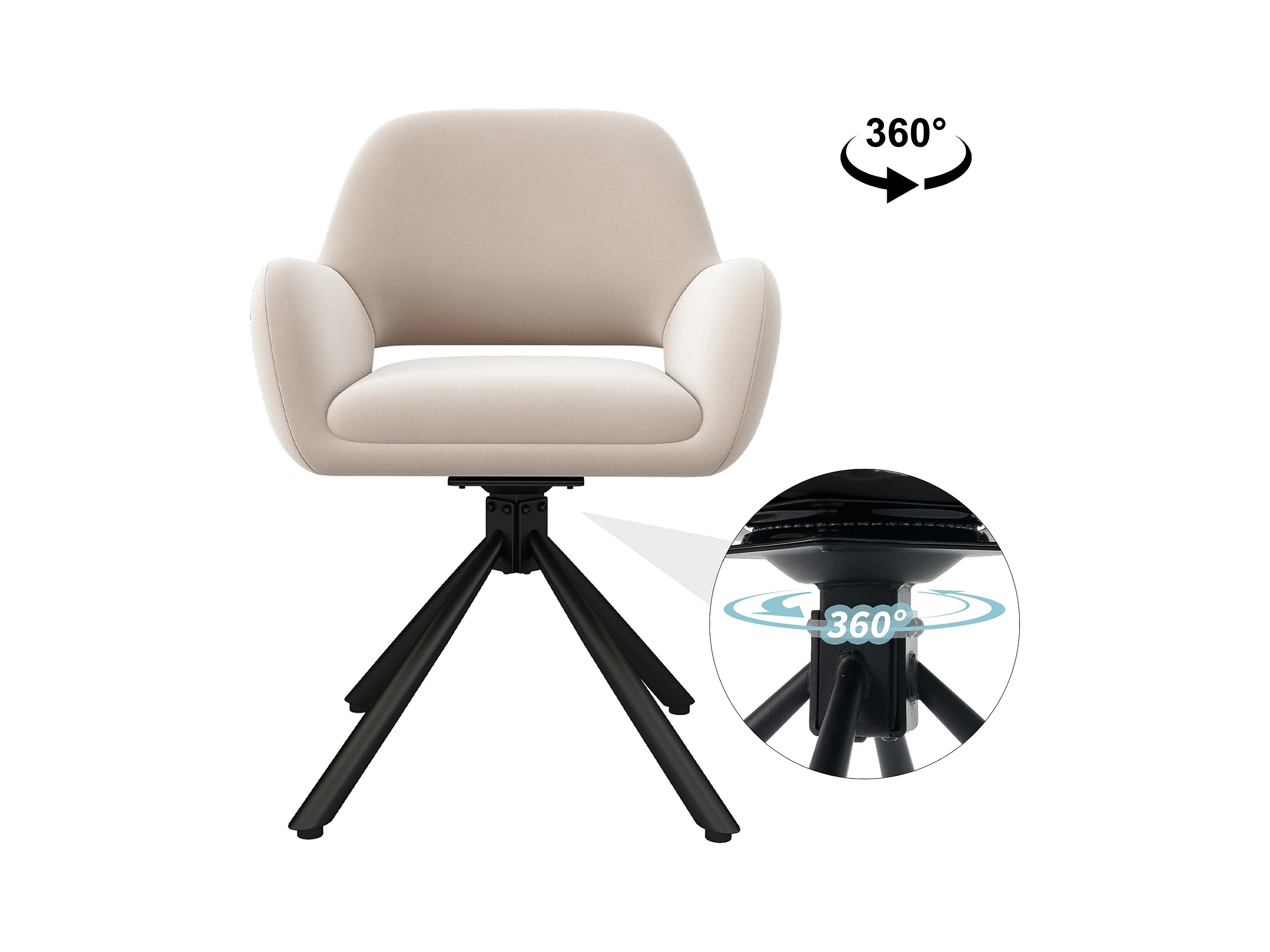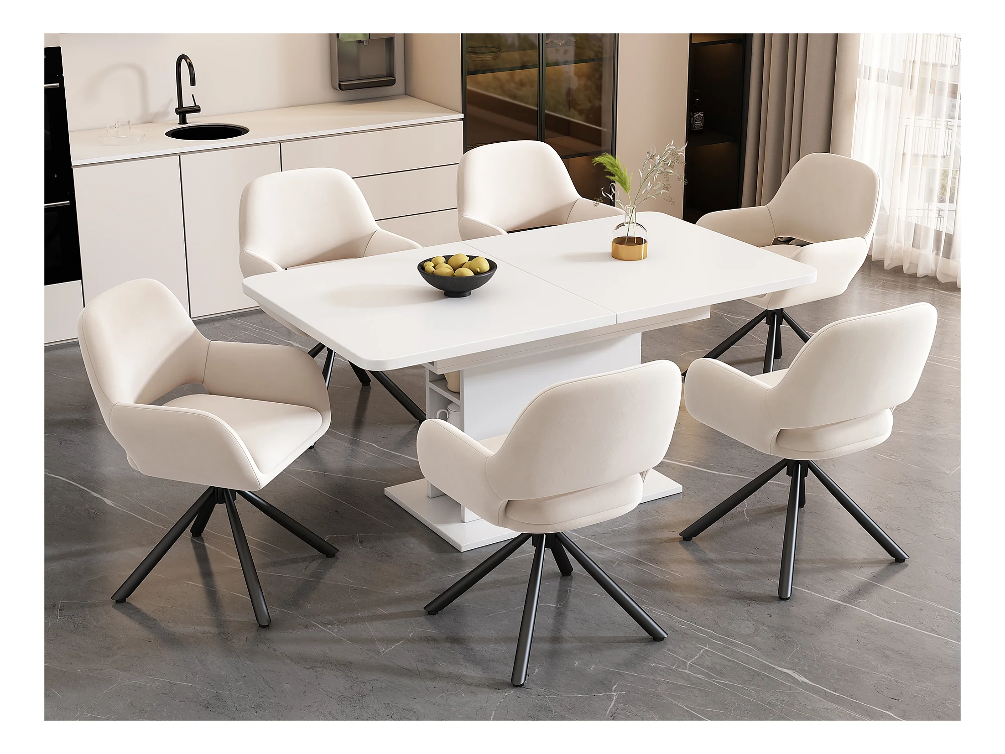 Set mit 6 Drehstühlen mit Armlehnen – Samtstoff – moderner Stil – Weiß