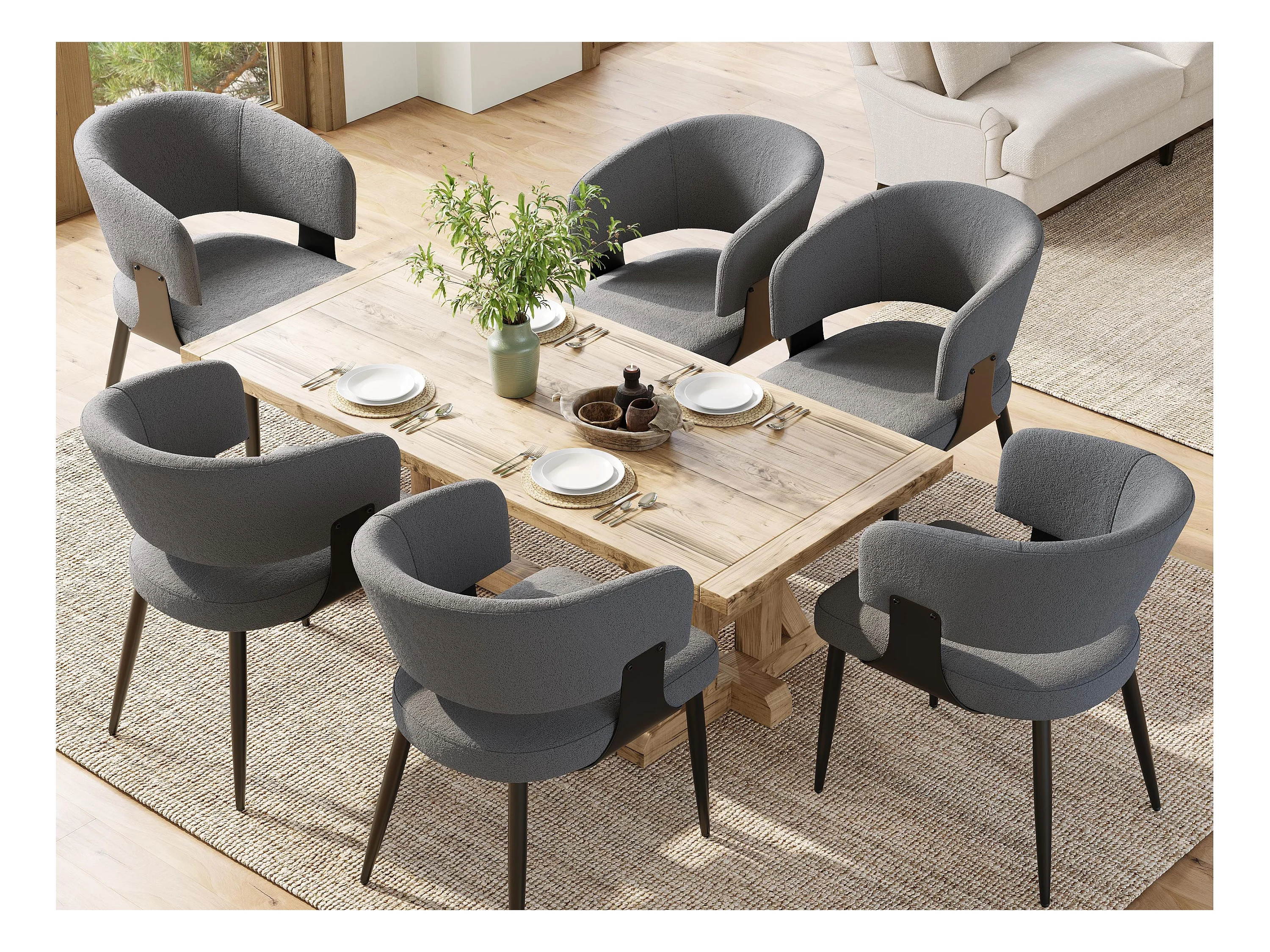 Set mit 6 gepolsterten Esszimmerstühlen - aus Flanell - Metallgestell - moderner Stil - grau