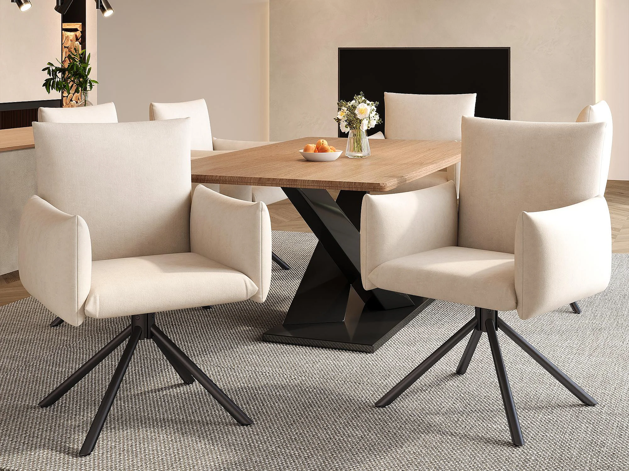 Set mit 6 gepolsterten Sesseln - 360° Drehfunktion - mit 4 Metallbeinen - Samt - Beige