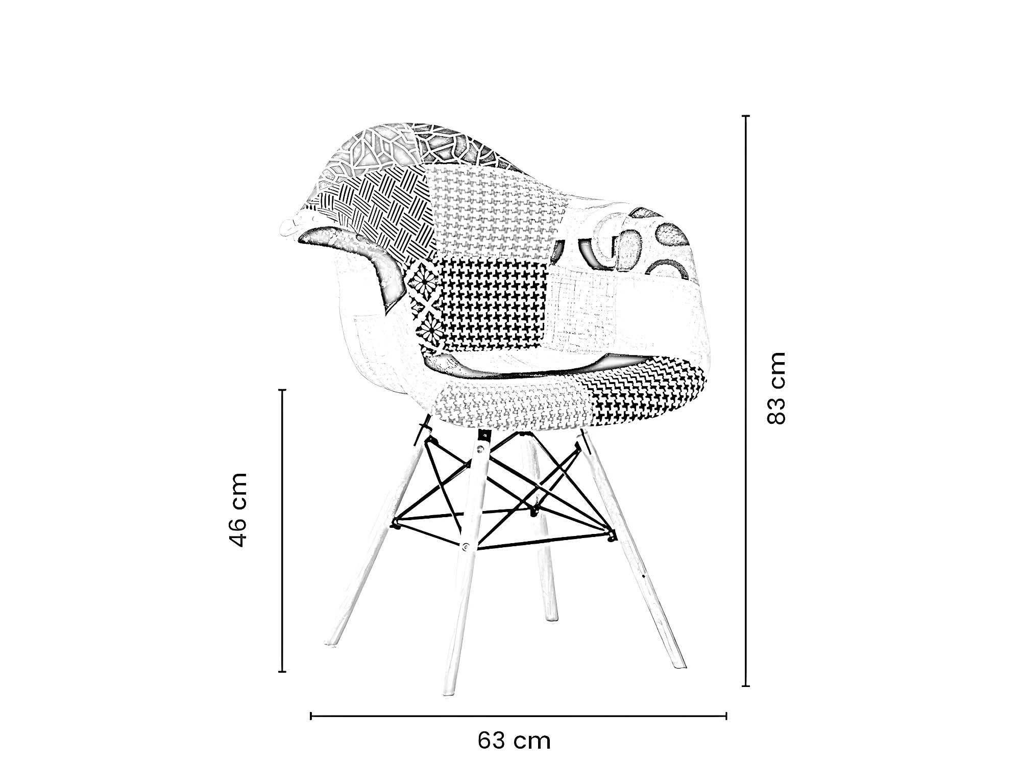Set mit 6 Moda-Patchwork-Wannensesseln – Stoffbezug mit Holzbeinen – Mehrfarbig