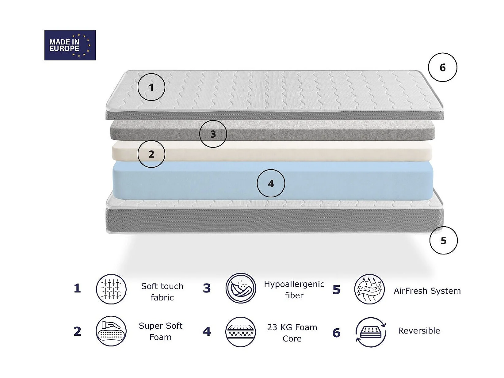 Set Schaumtoffmatratze 70x190 cm SHIRA SONHO mit Matratzenchoner und Kien