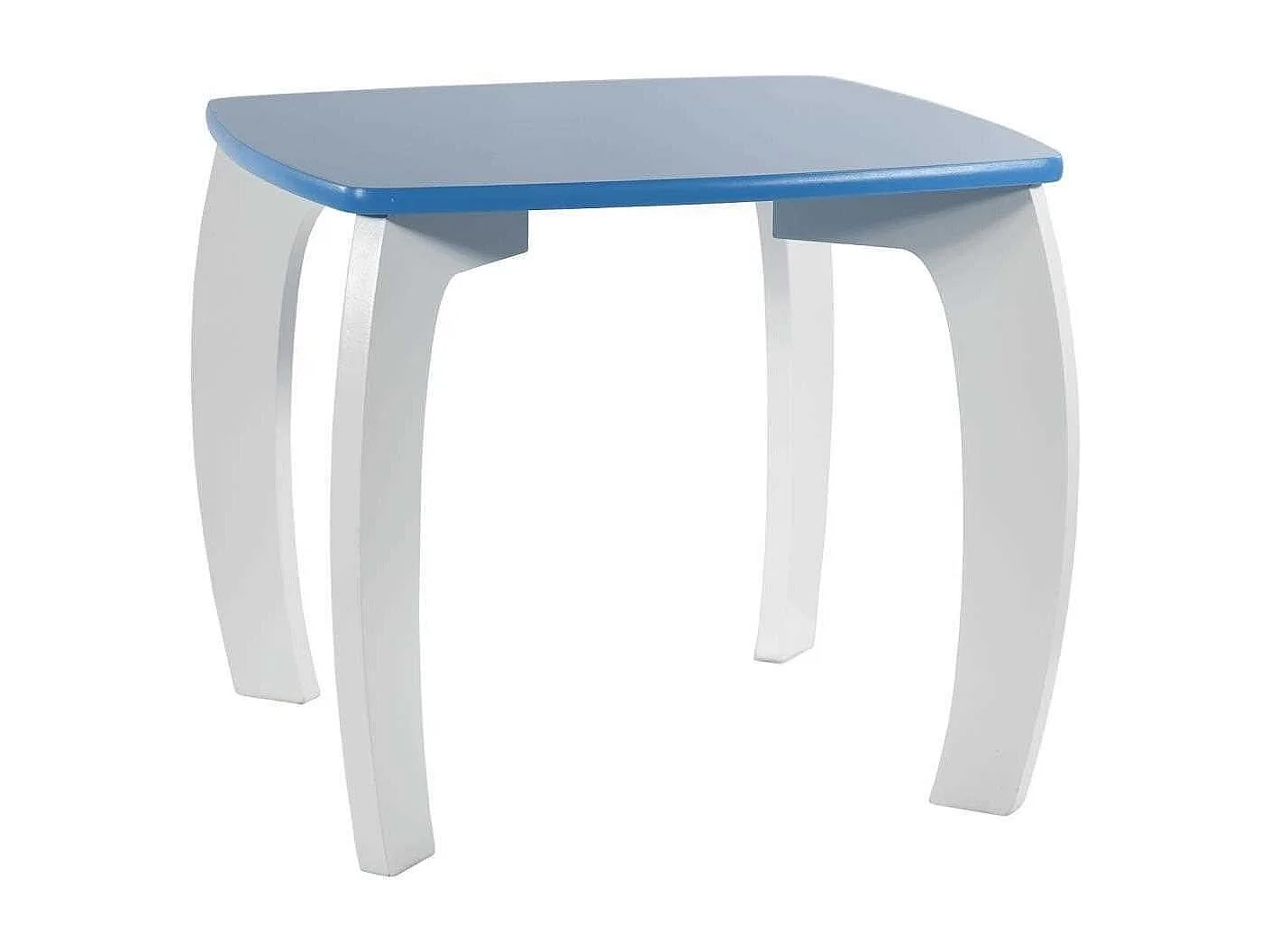 Set Tisch und 2 Hocker aus weißem/blauen Holz 96x48x42 h cm