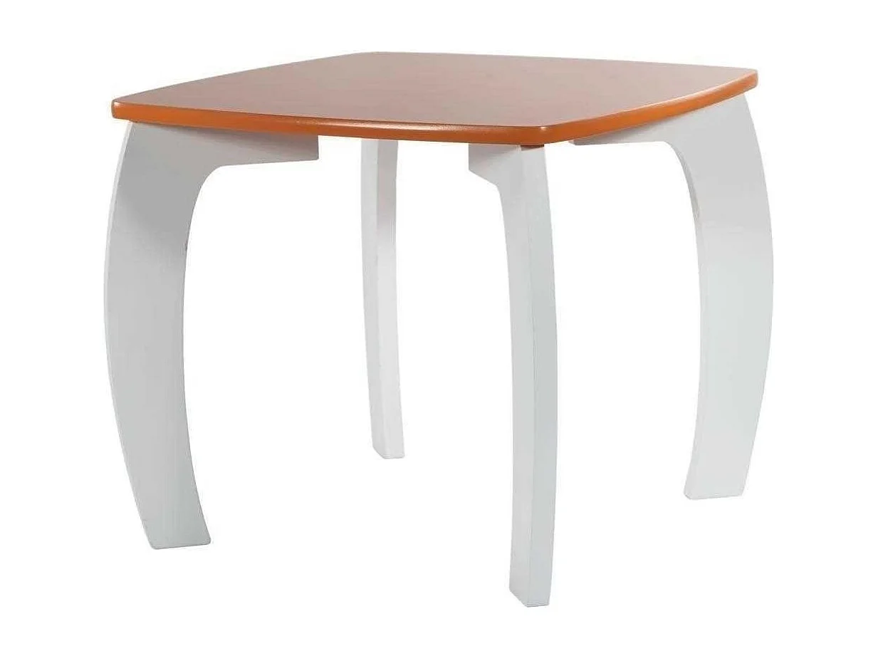 Set Tisch und 2 Hocker aus weißem/orangen Holz 96x48x42 h cm