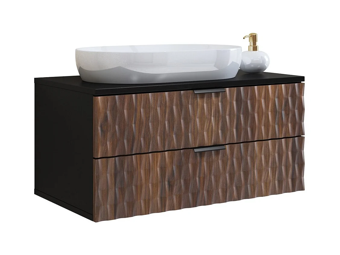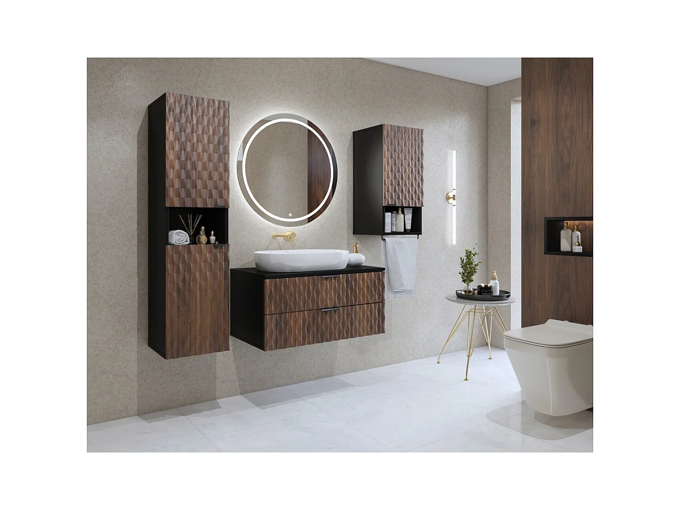 Set von 3 Badezimmermöbeln KING – Dunkle Eiche und Schwarz - 60 cm