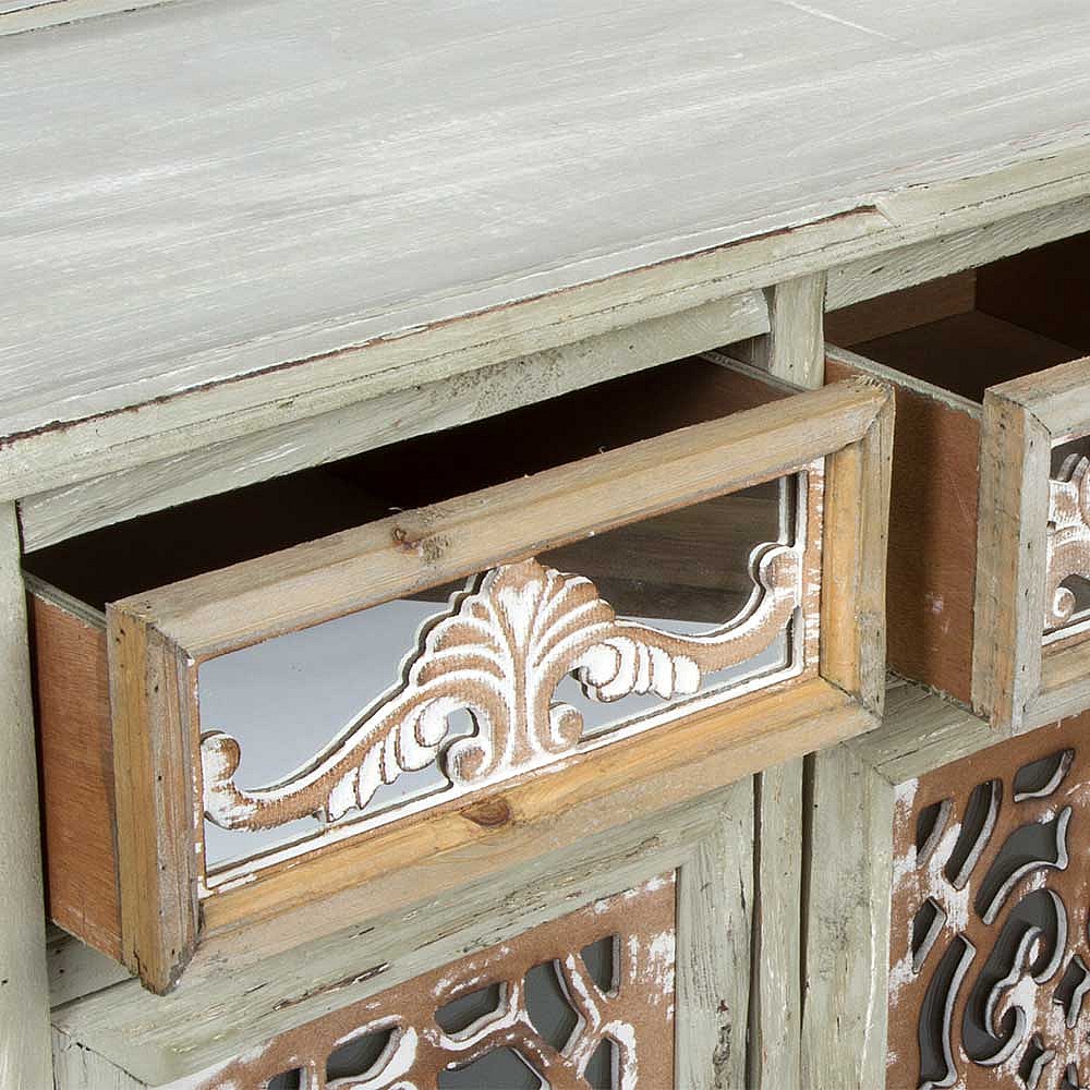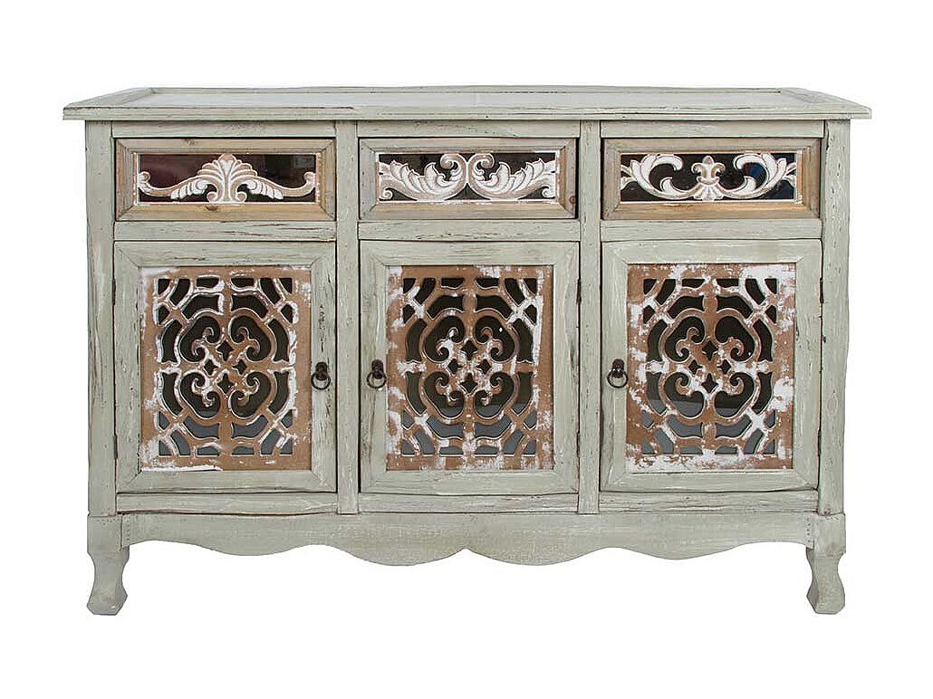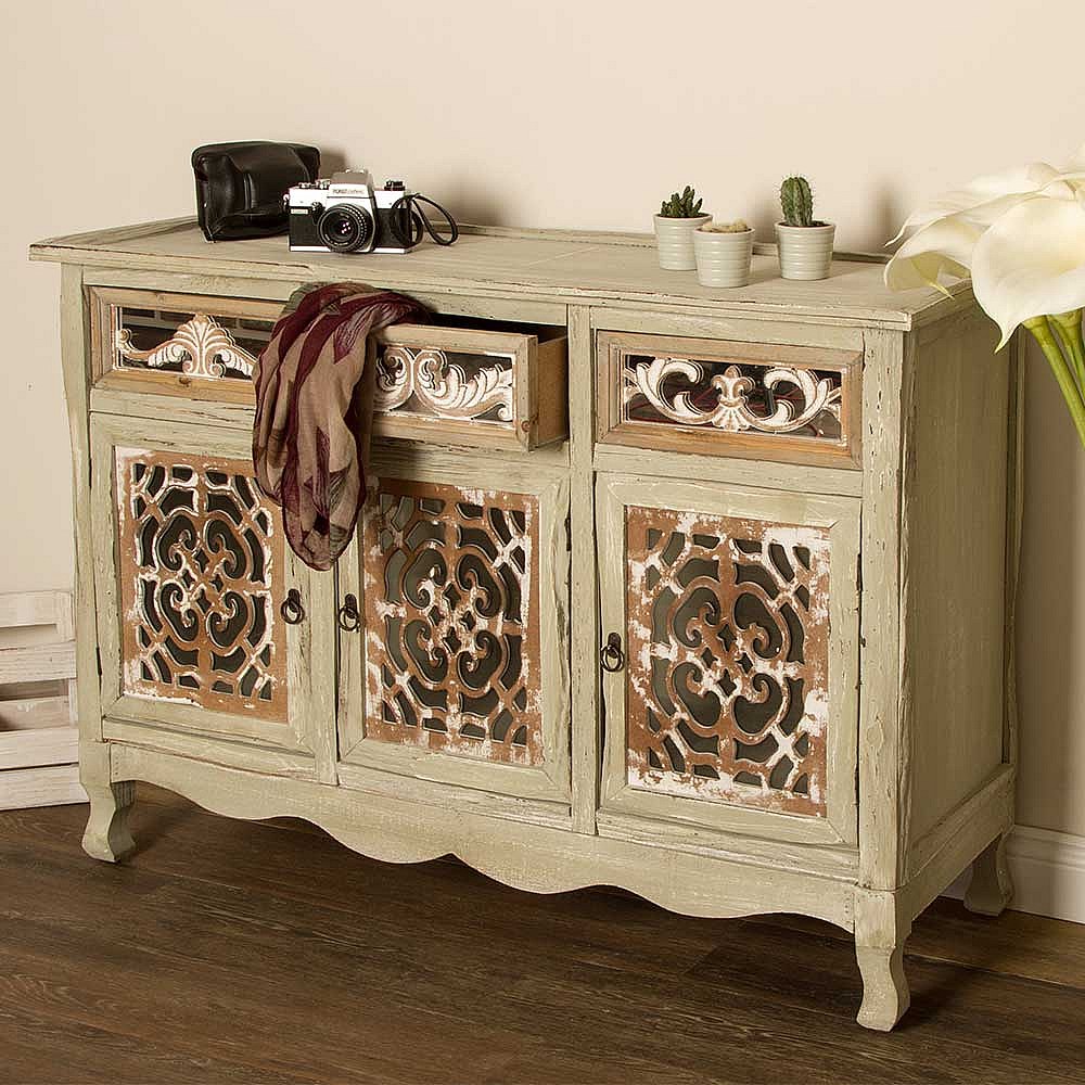 Shabby Chic Sideboard in Graubraun drei Schubladen und Türen
