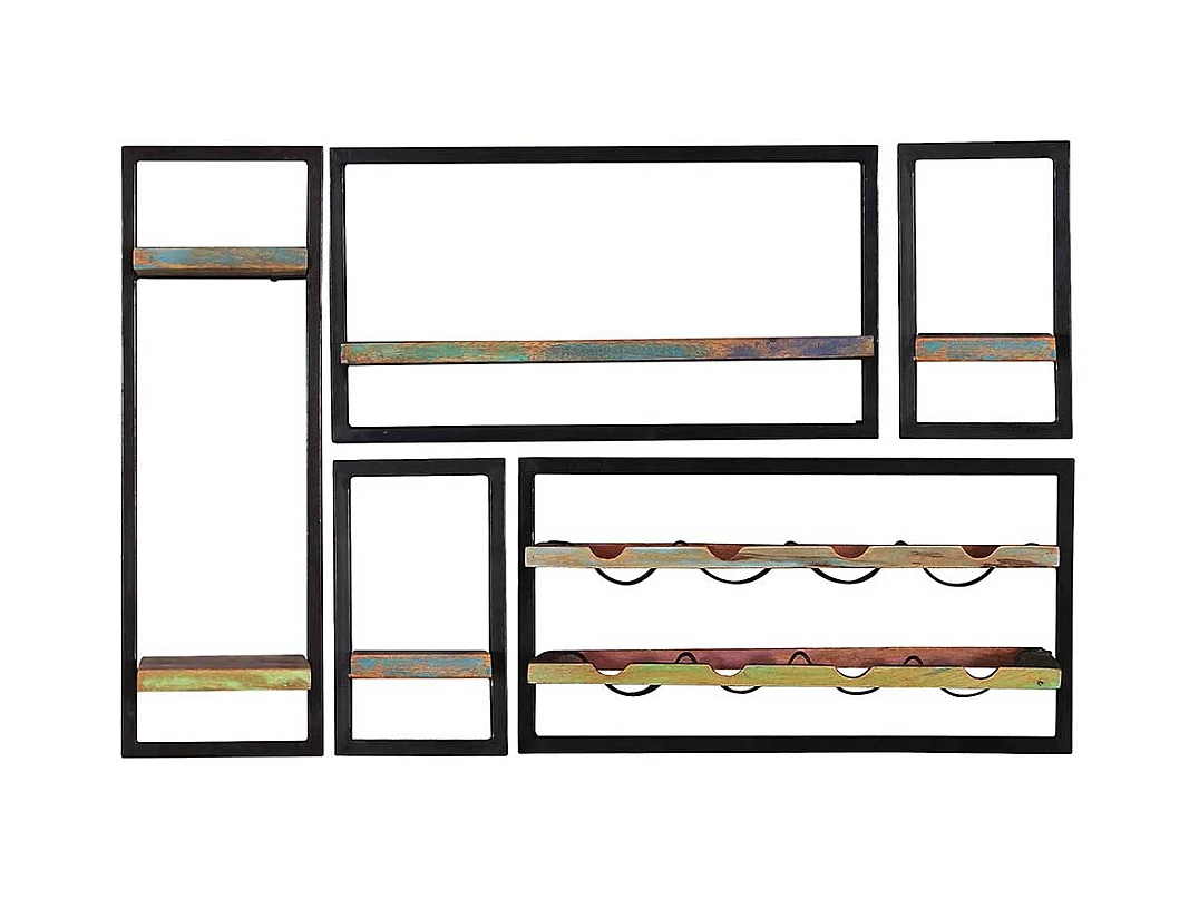 Shabby Regal Set mit Weinaufbewahrung Schwarz und Bunt (fünfteilig)