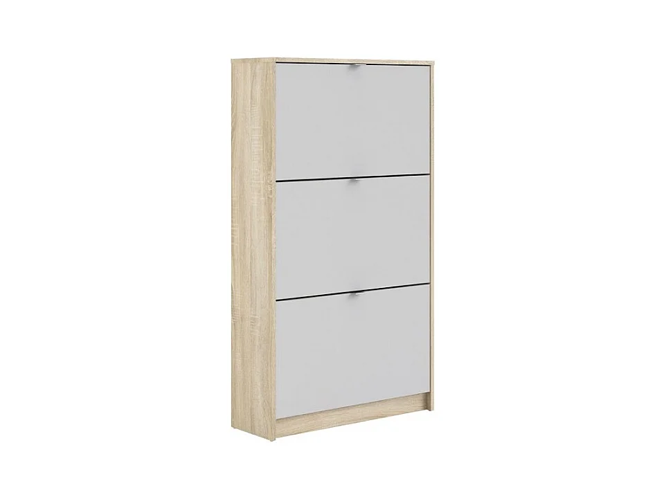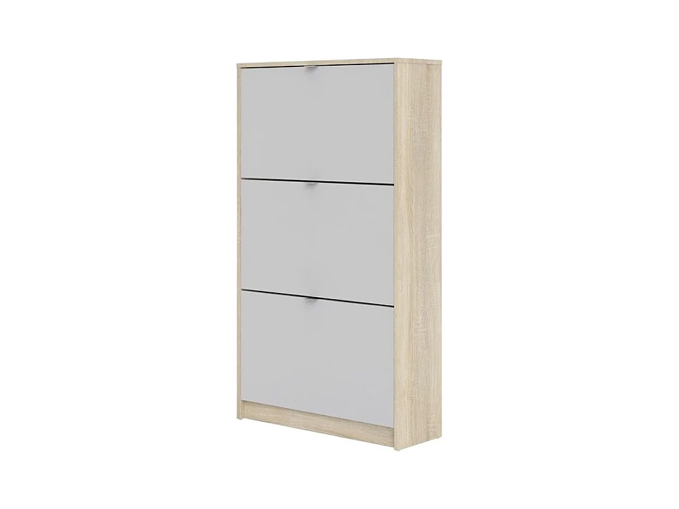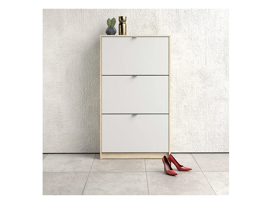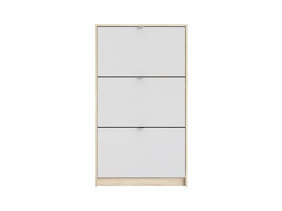 Shane Schuhschrank 3 Klapptüren 2R Eiche Struktur Dekor, weiss.