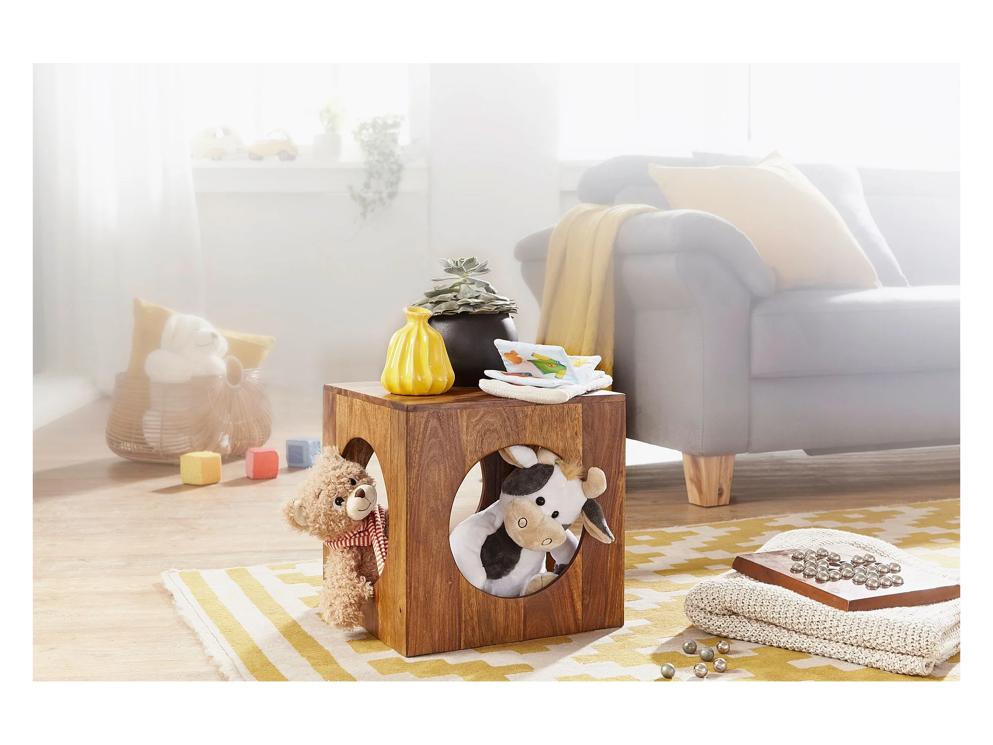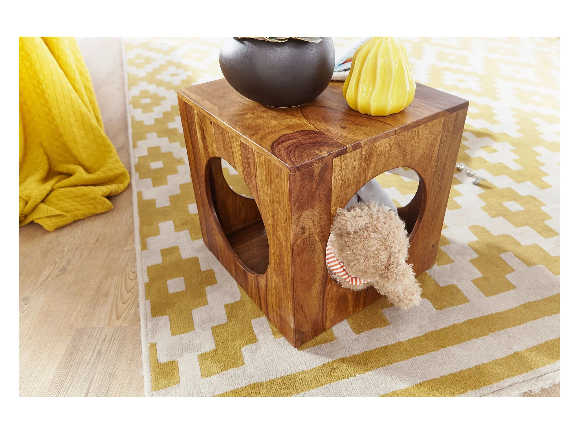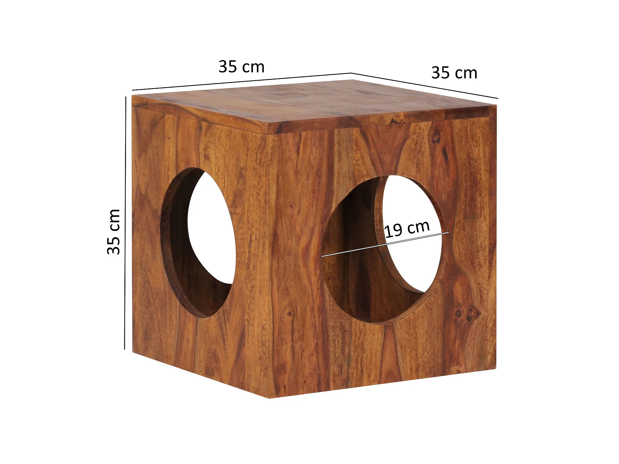 Sheesham Beistelltisch 35x35x35 cm Cube Holztisch Tisch mit Stauraum