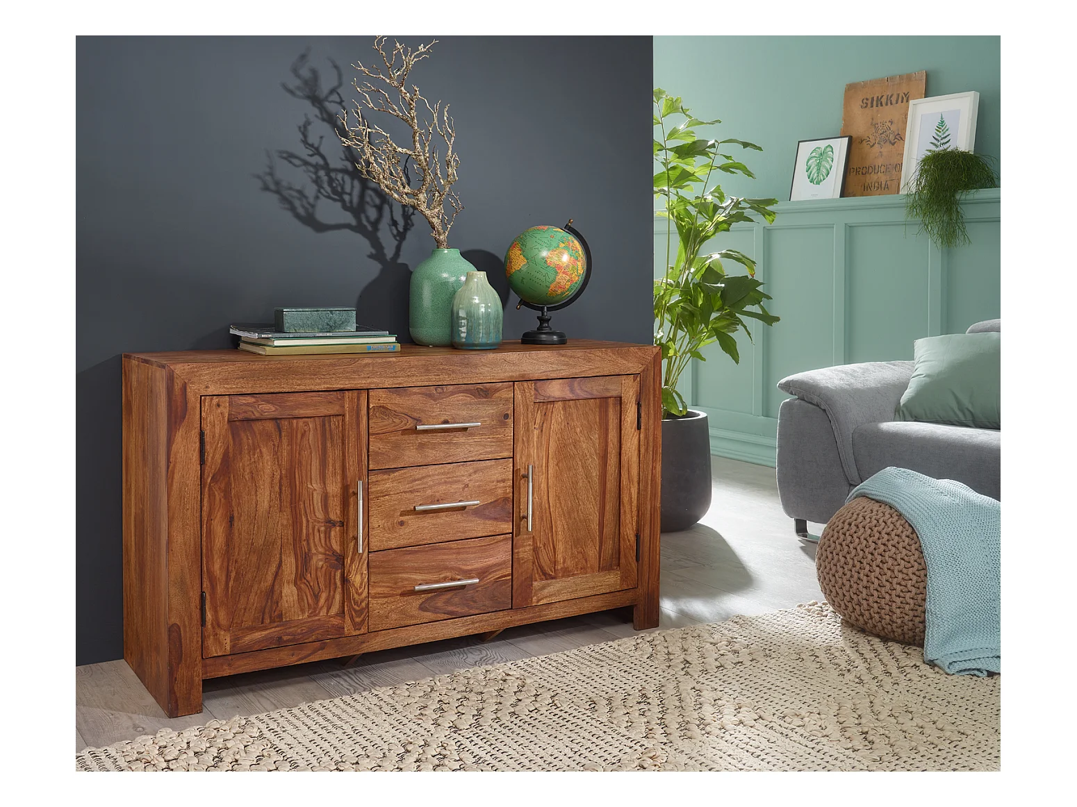 Sheesham Massiv Sideboard 118,5 x 40 cm Massivholz Kommode Anrichte Neu