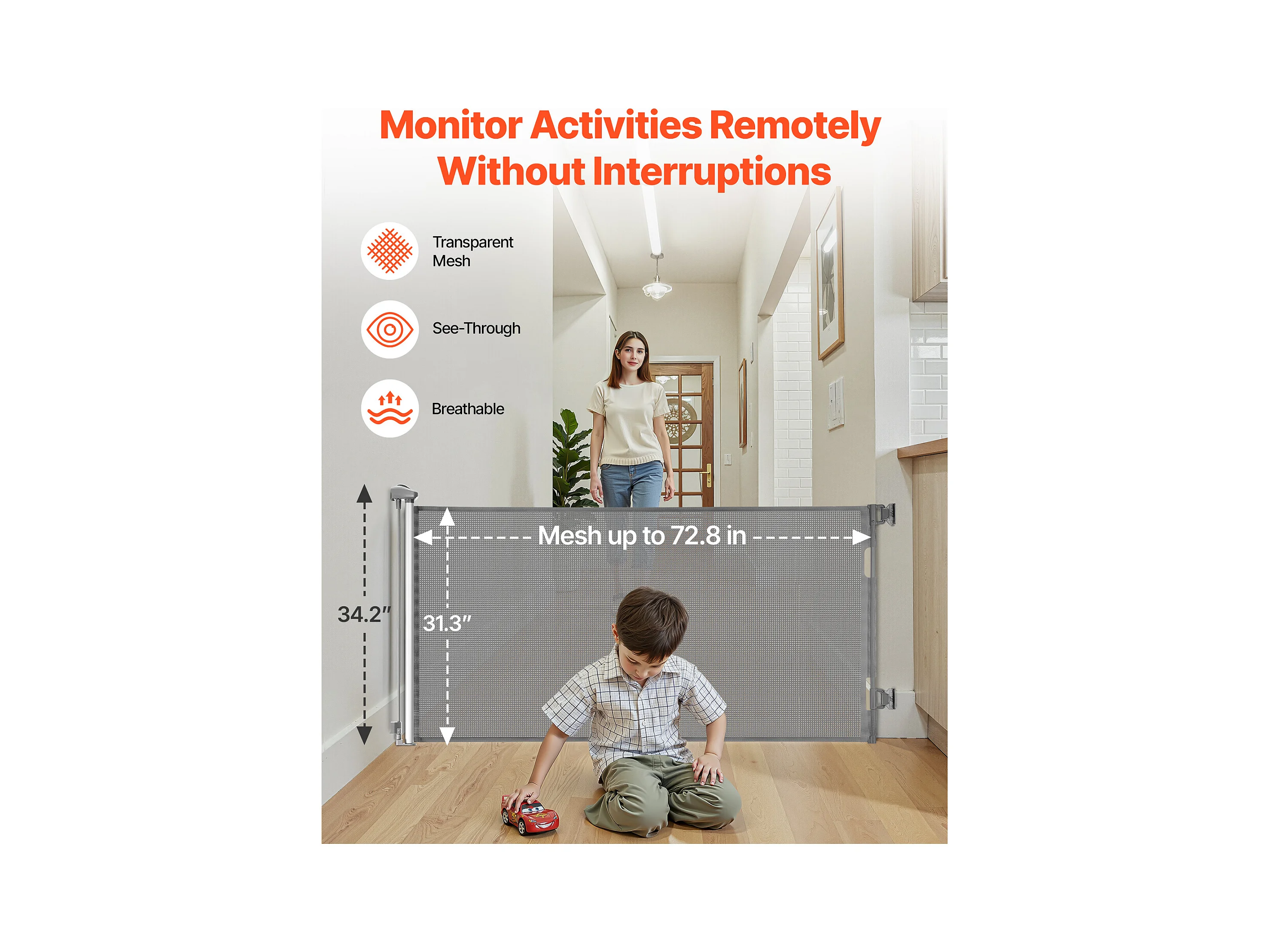 Sicherheitsbarriere SucceBuy Erweiterbar, Zaun aus Mesh 185 cm Breit und 79,5 cm Hoch, Barriere Retraktil für Haustiere, Ideal für Hunde und Katzen