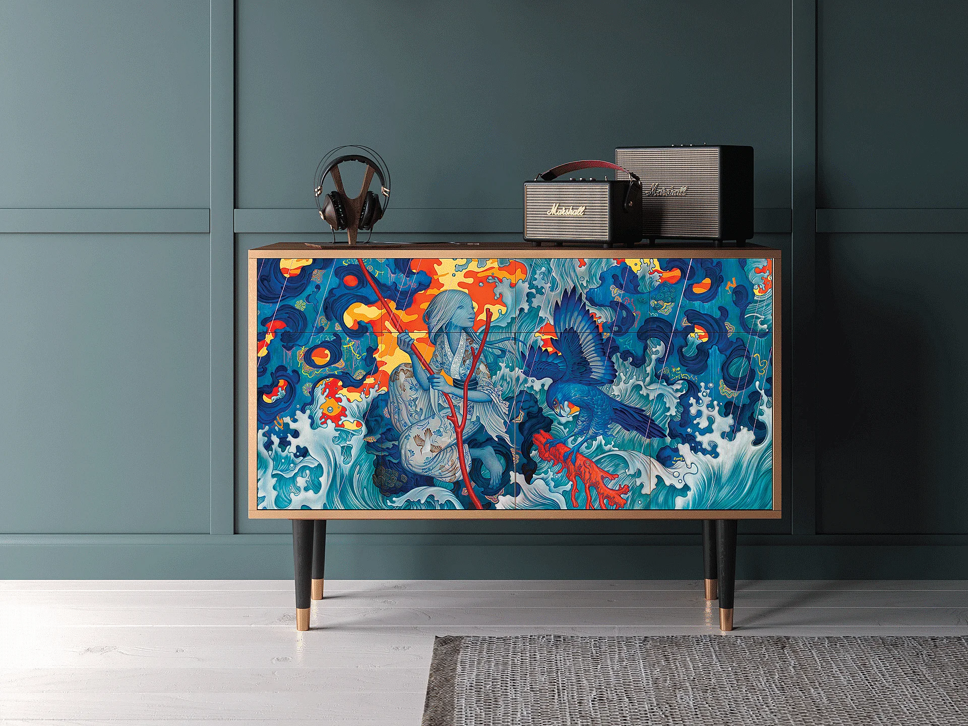 Sideboard - 115x85x48 cm - BS4 - The Girl - James Jean, Walnuss