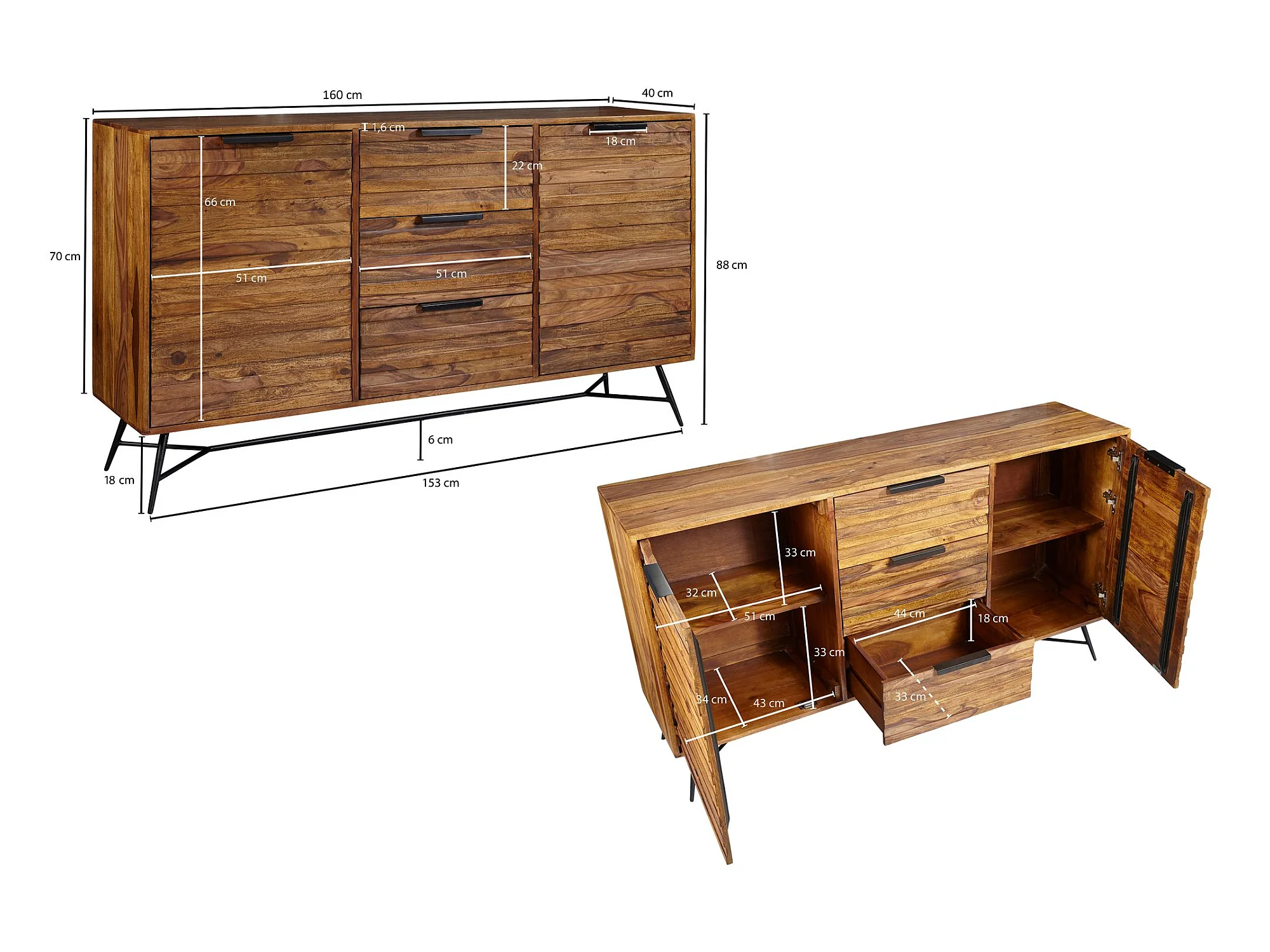Sideboard 160 cm Kommode Türen & Schubladen Anrichte Massivholz Schrank