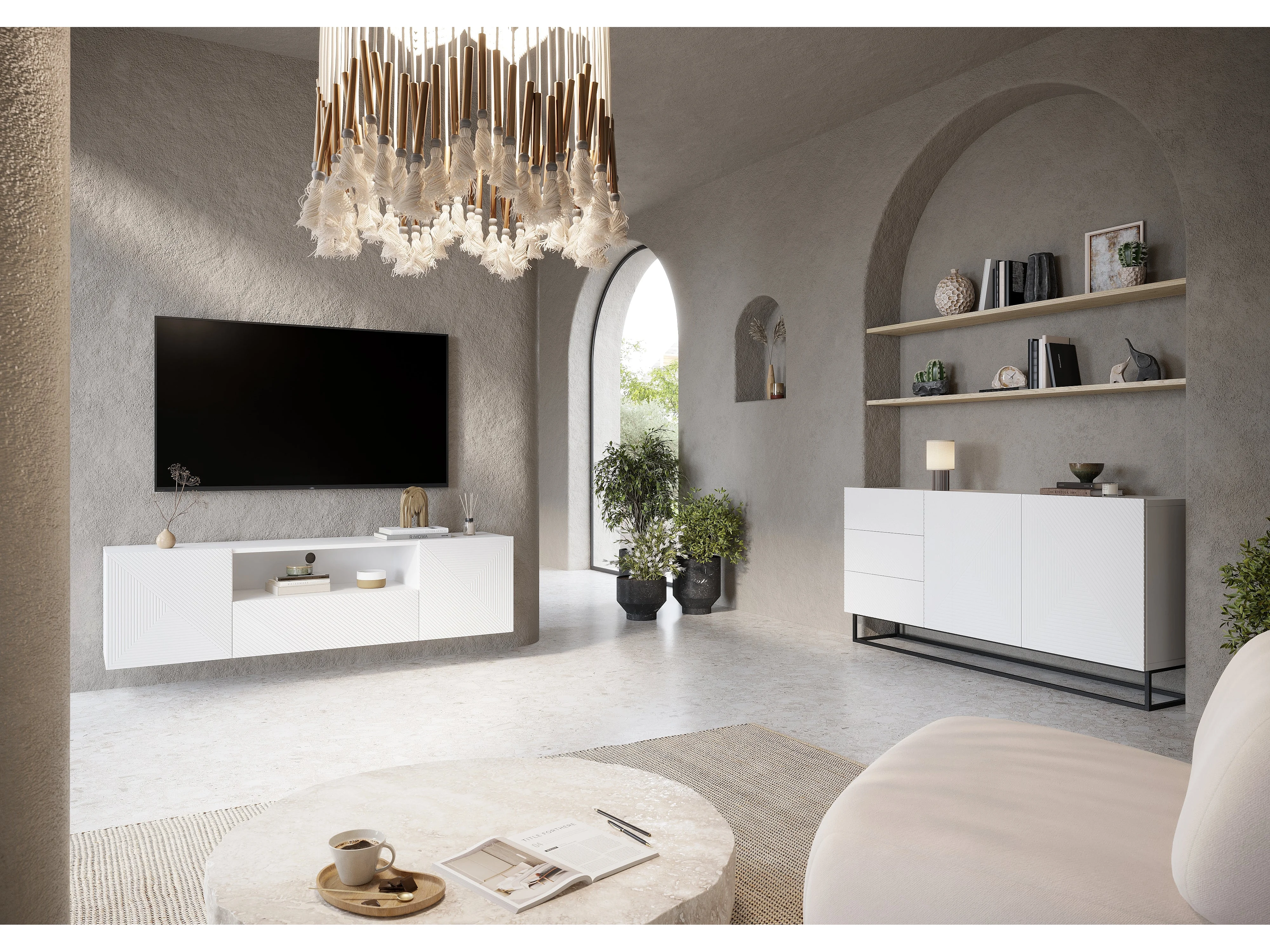 Sideboard 2 Türen 3 Schubladen weißes Schichtholz mit Metallfuß 167x43cm