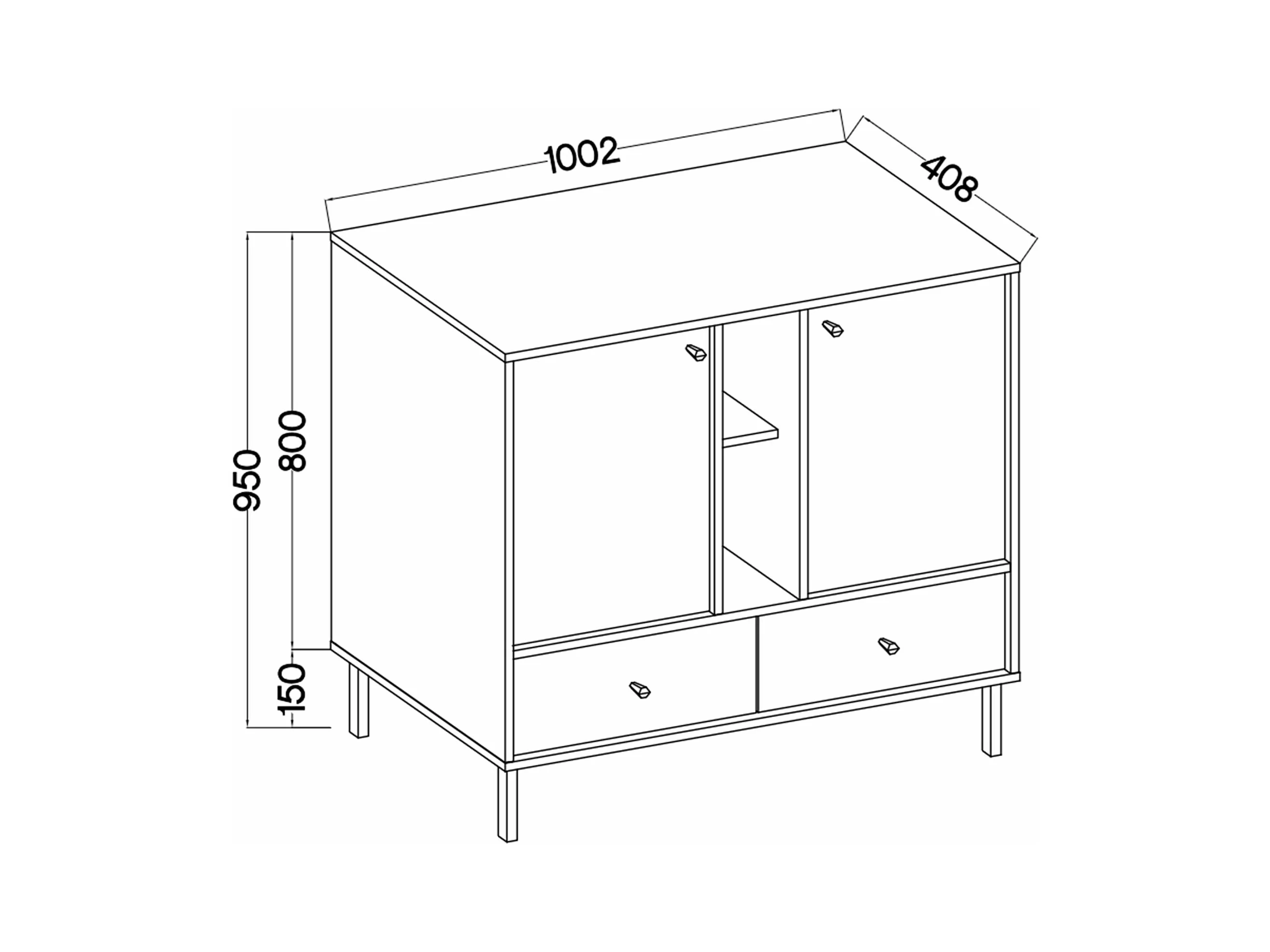 Sideboard 2-türig mit 2 Schubladen und Regal - Sandbeige - 100 cm - OKTIO