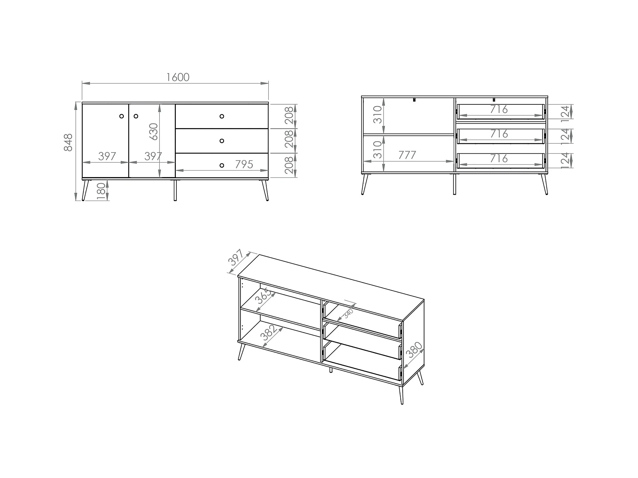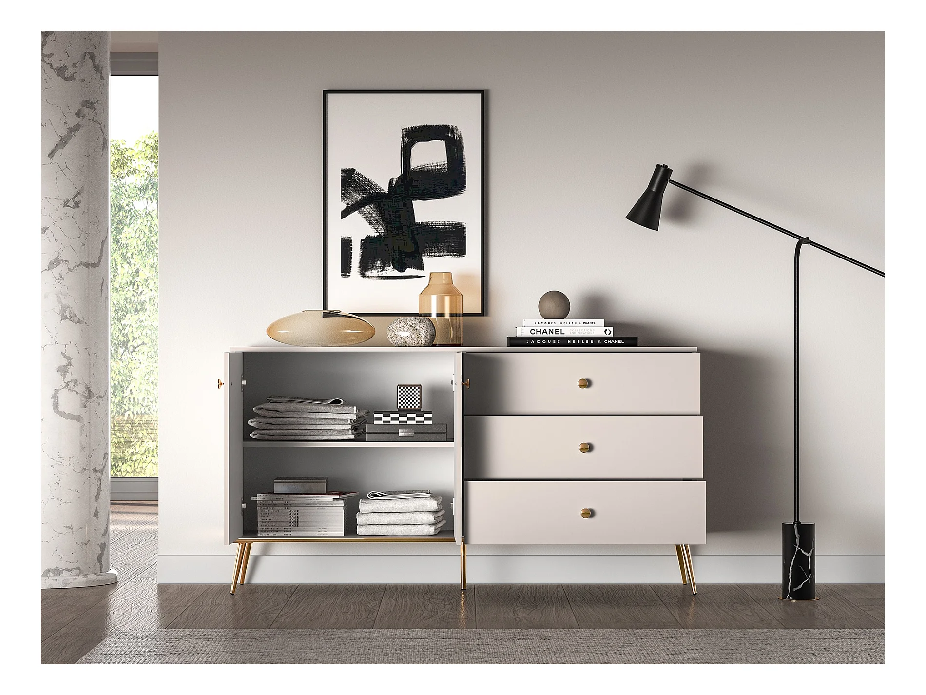 Sideboard 2-türig mit 3 Schubladen - Greige - 160 cm - SELGIN