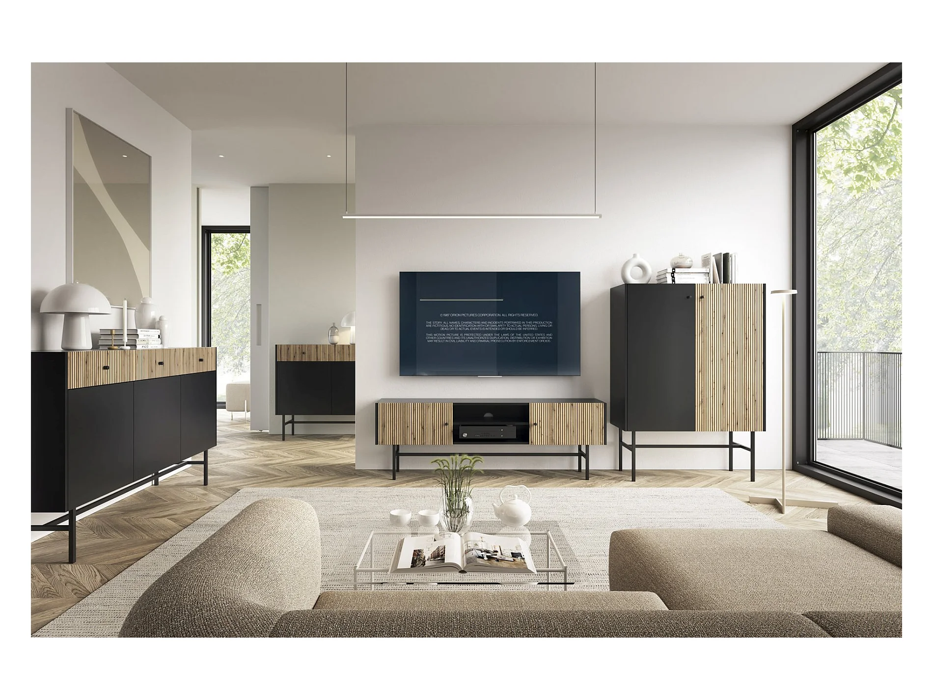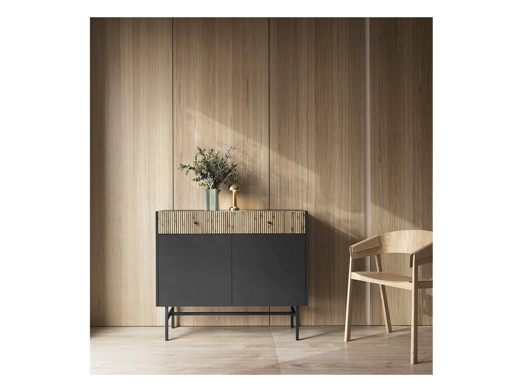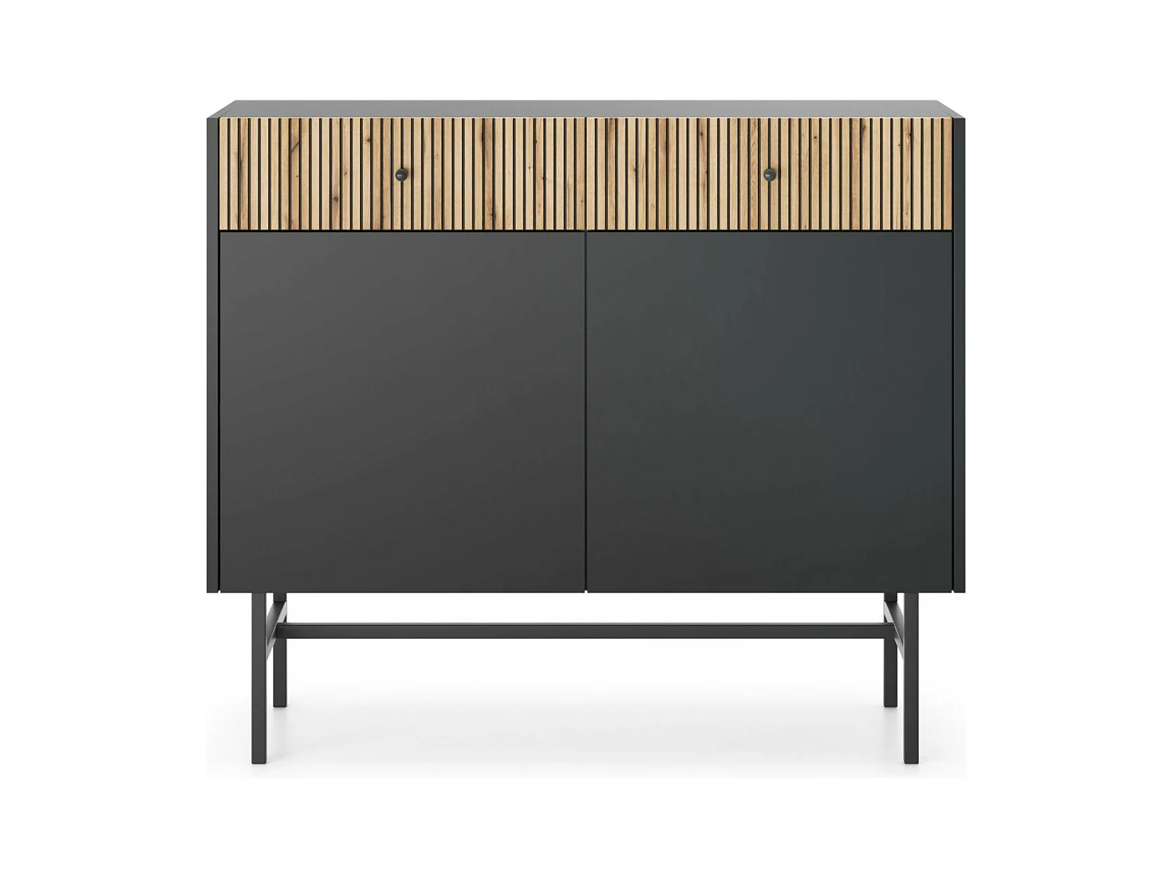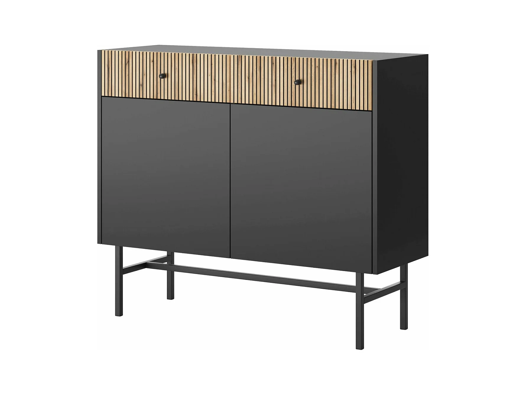 Sideboard 2-türig - Schwarz / Holzoptik Eiche - 104 cm - DIVENOS