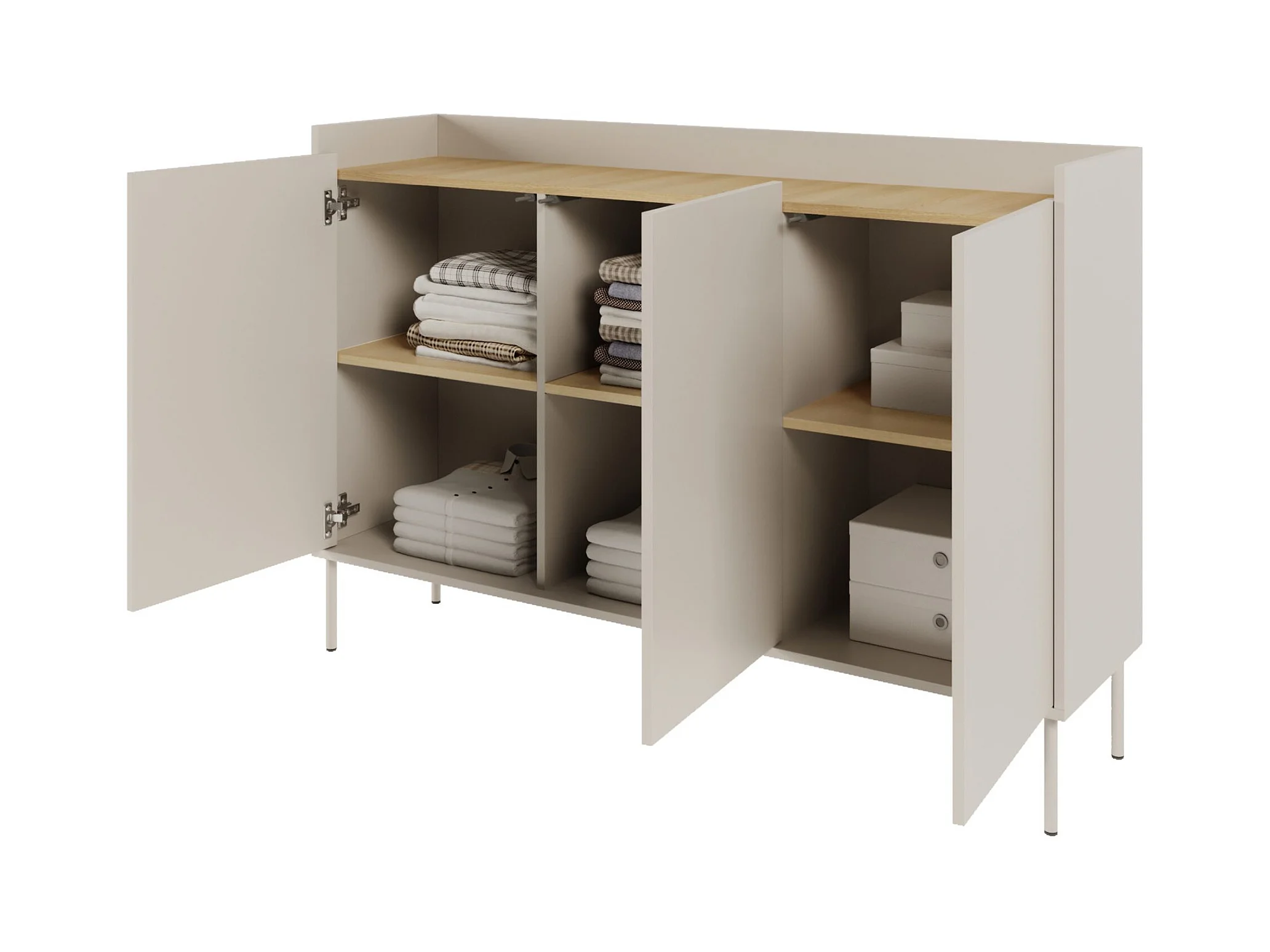 Sideboard 3-türig – 140 cm – Kaschmirgrau / Holzoptik Eiche – TOVI