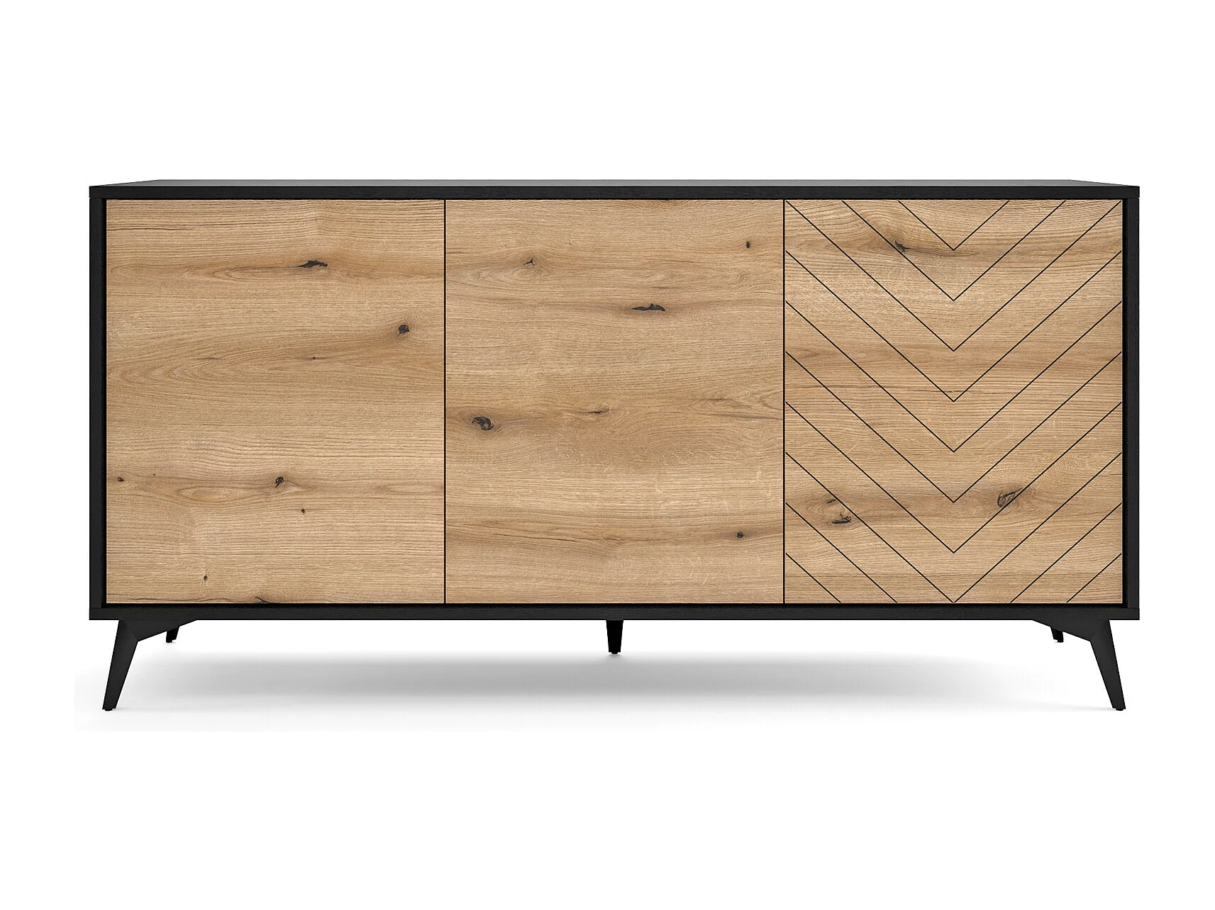 Dreitürige Kommode - 154 cm - Schwarz/Eiche Evoke Fischgrätmuster - BOULIA