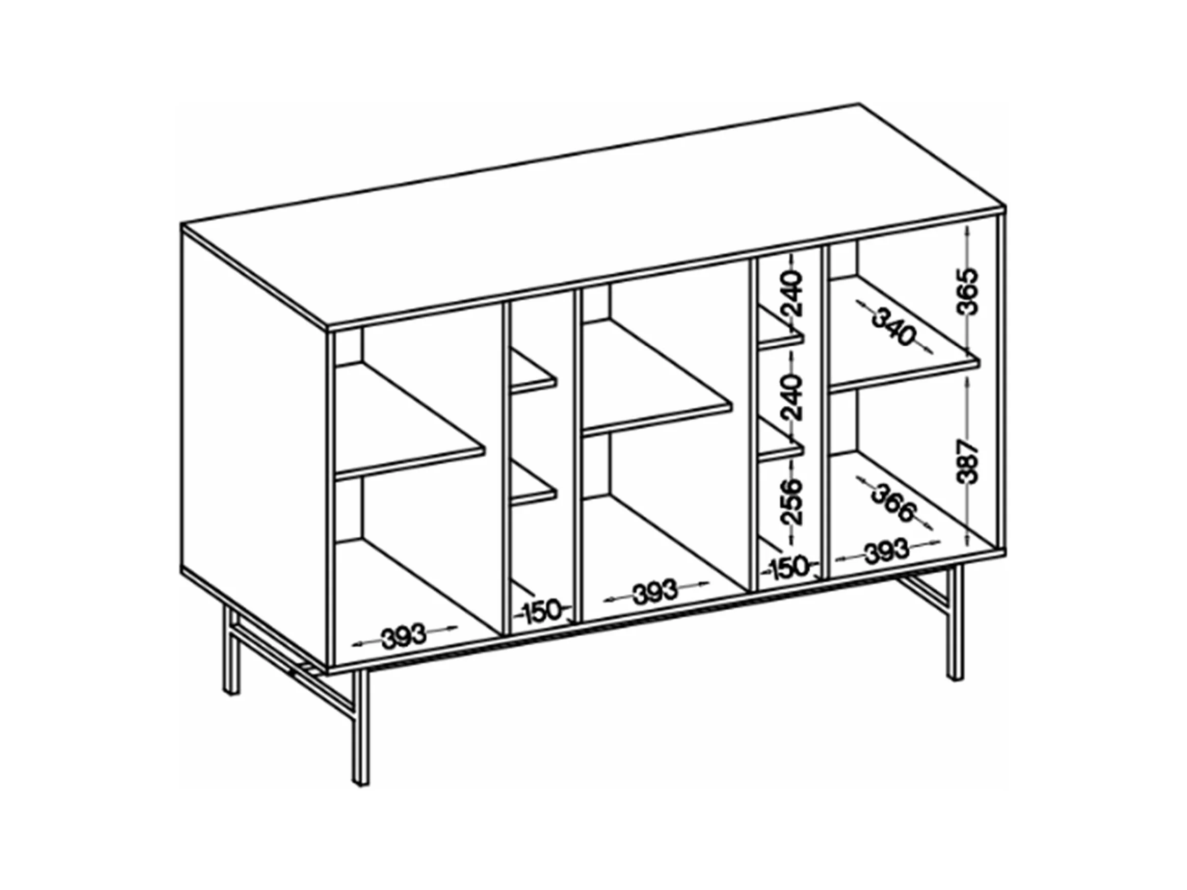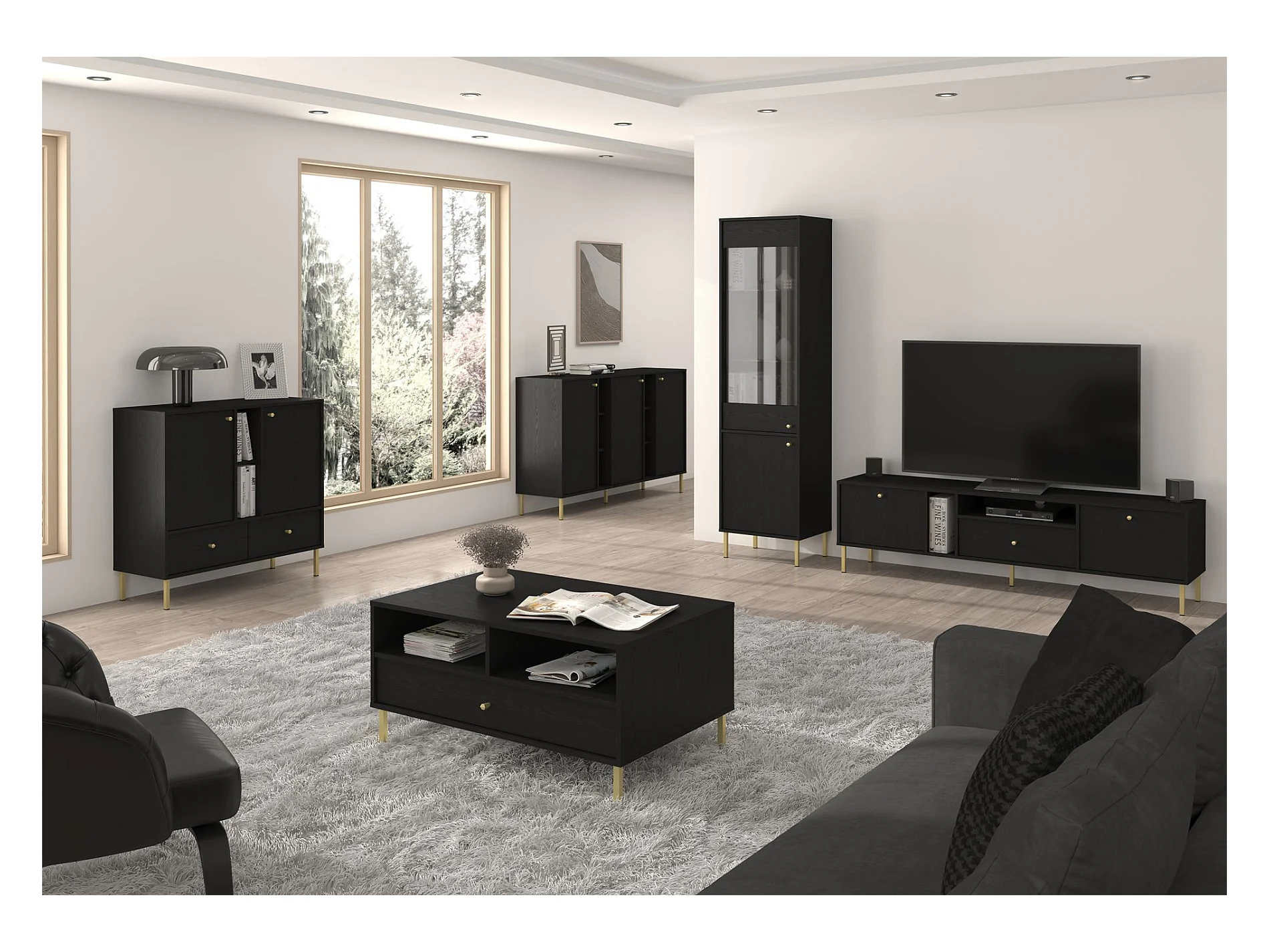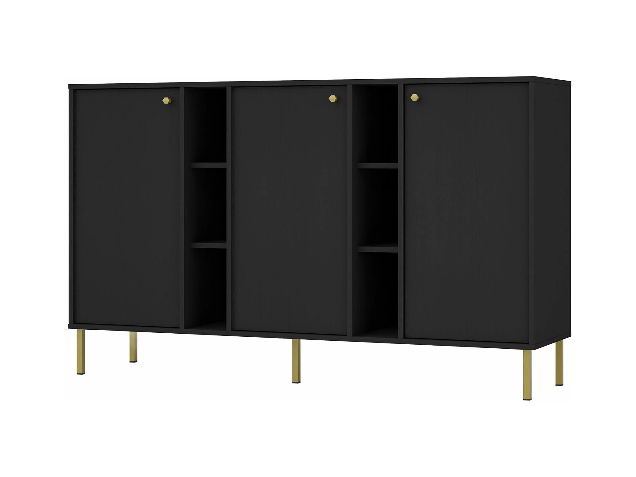 Sideboard 3-türig mit Regalen - Schwarz-Graphit - 159 cm - OKTIO