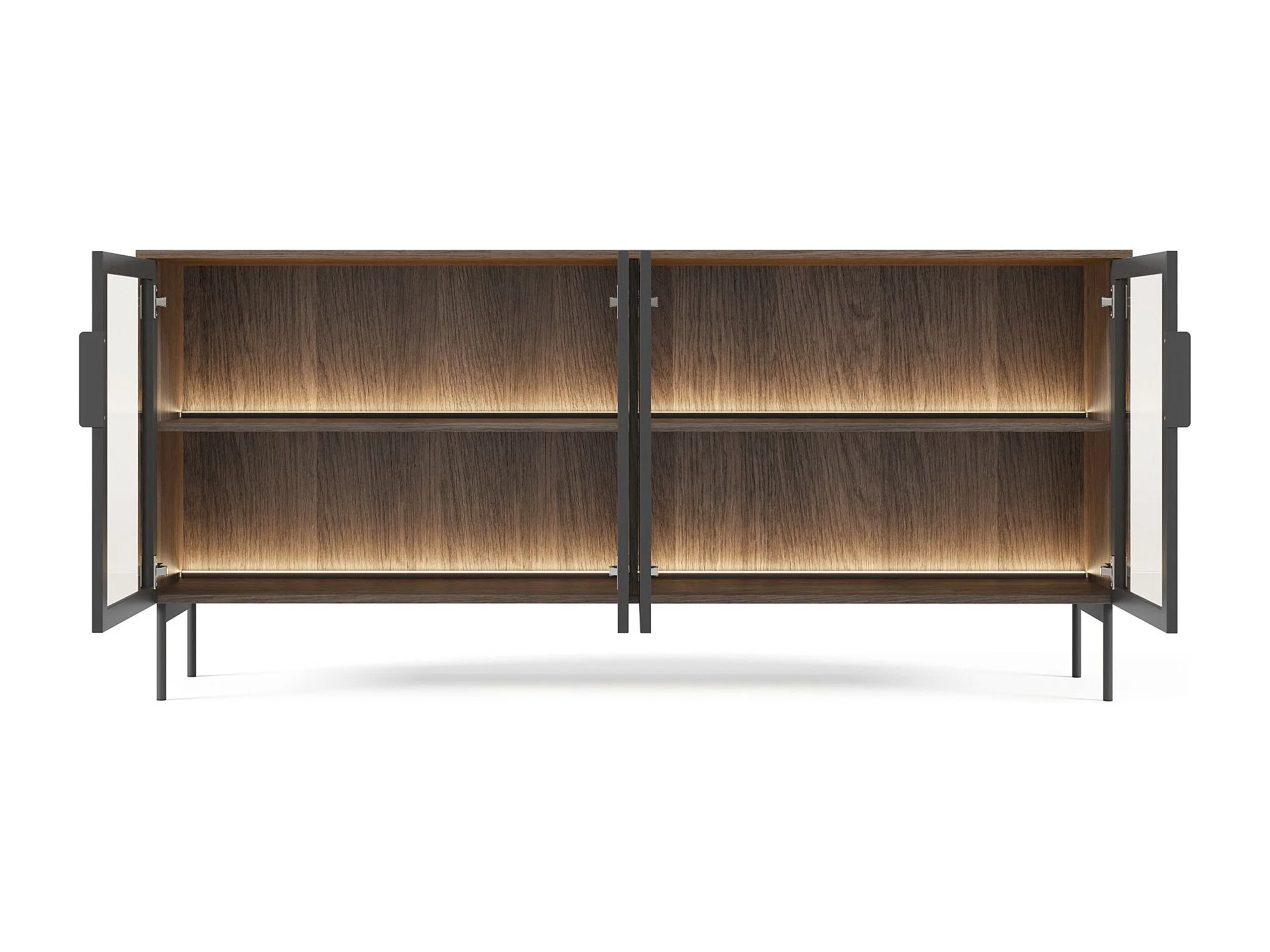 Sideboard 4-türig mit Glasfronten und LED - Eiche Dunin - 181 cm - LUMI