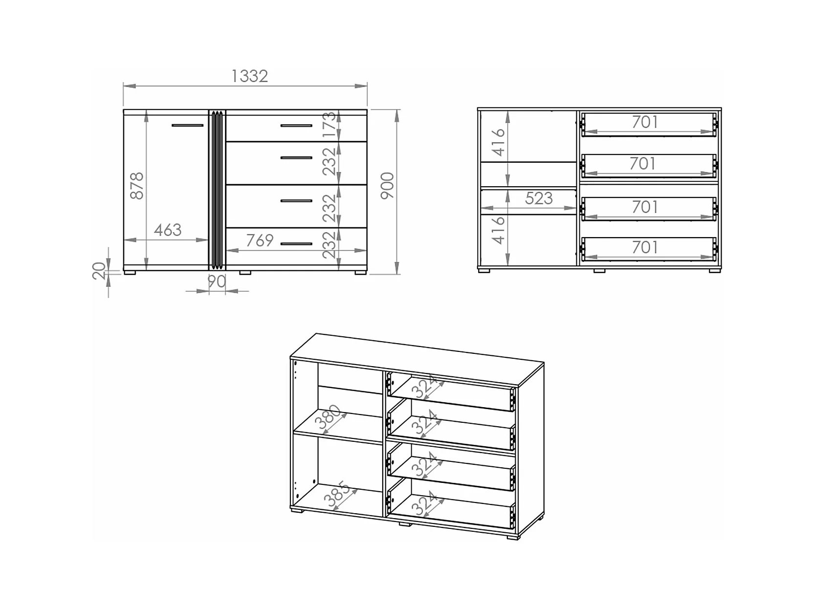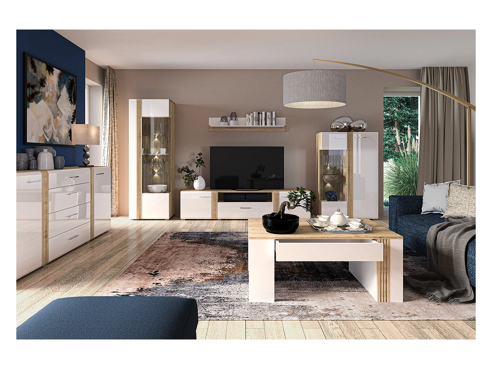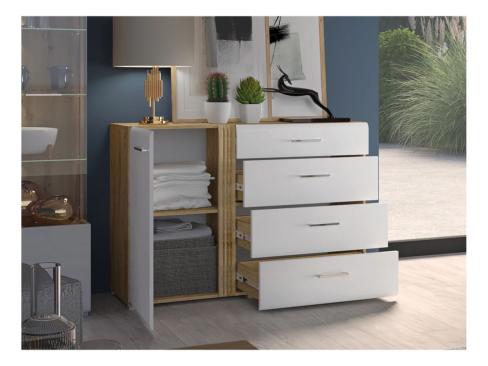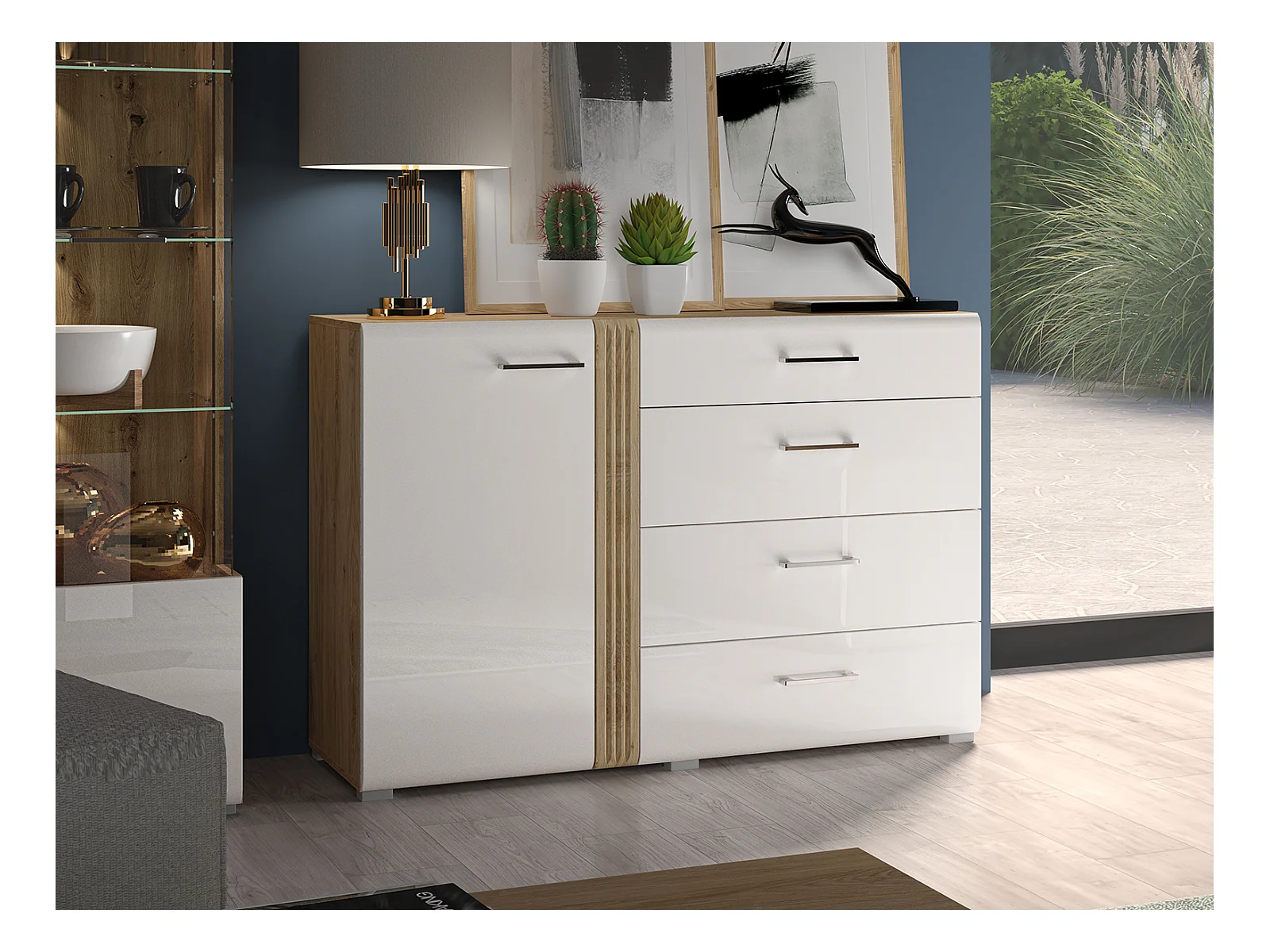 SIDEBOARD Adagio weiß Hochglanz / Eiche castello 134 / 42 / 90cm
