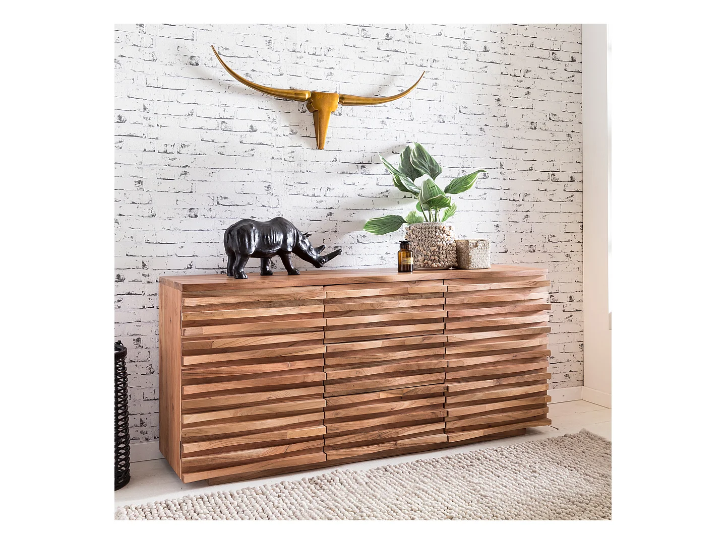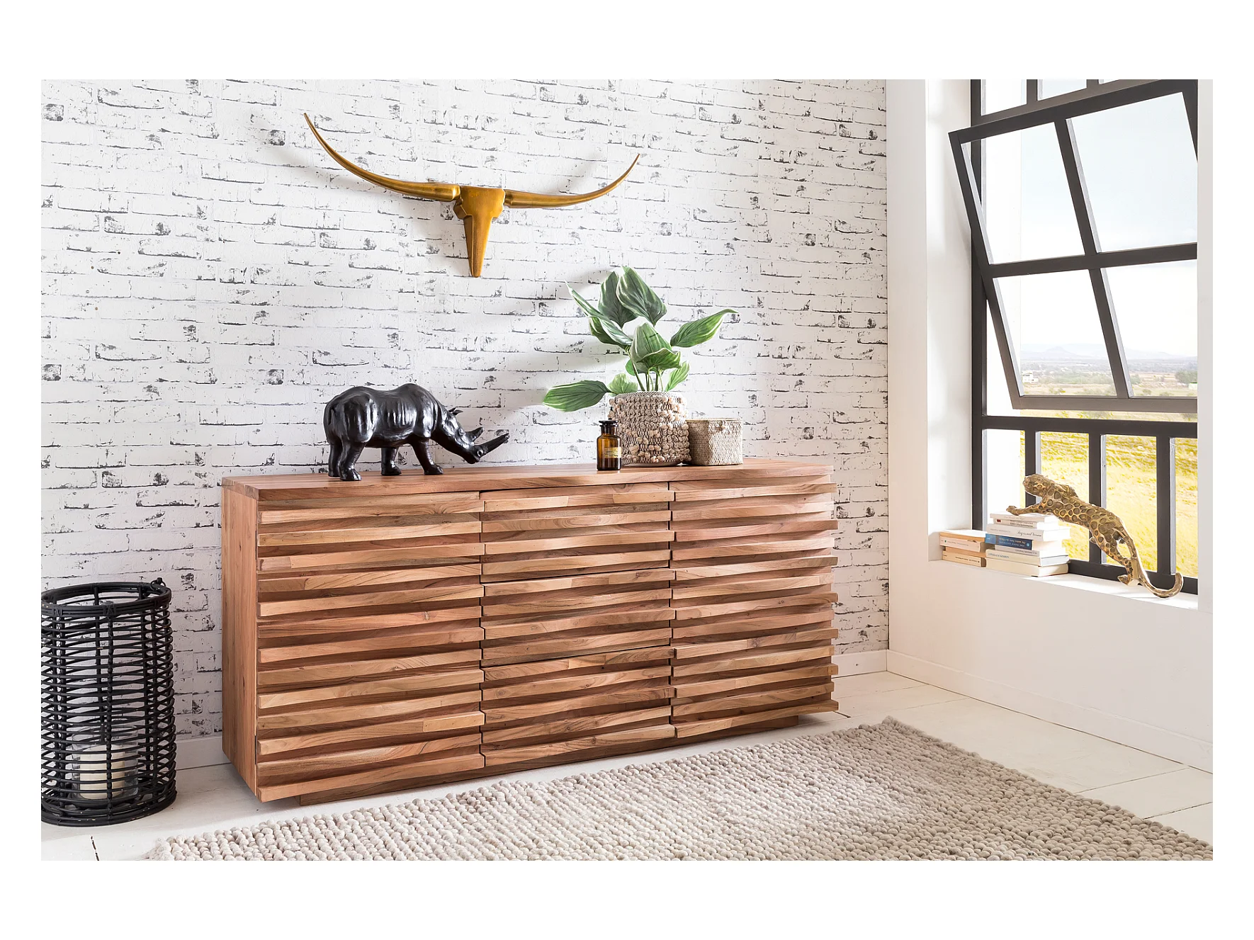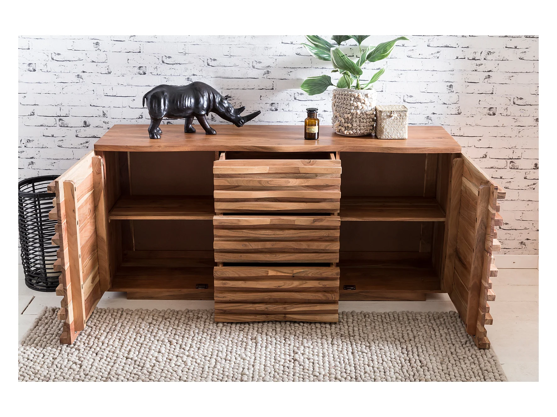 Sideboard Akazie 160 cm Massivholz Anrichte Landhaus Kommode Schrank Baumkante