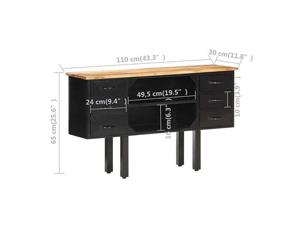 Sideboard Anrichte - 110x30x65 cm Raues Mango-Massivholz und Stahl -RM12482