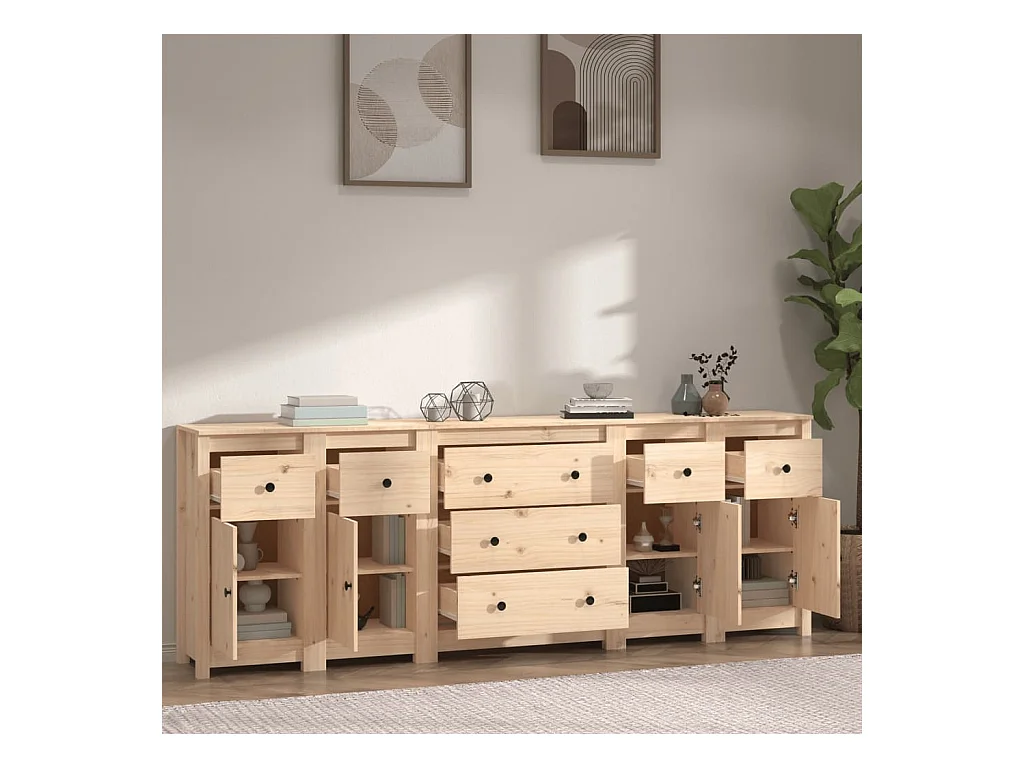 Sideboard Anrichte - 230x35x80 cm Massivholz Kiefer -RM85710