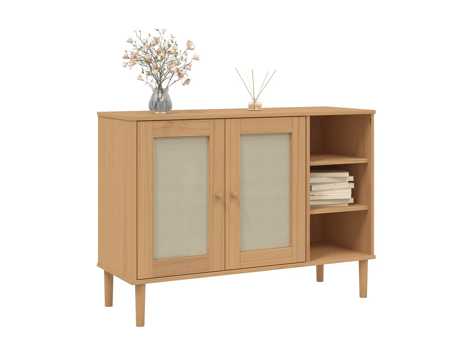 Sideboard Anrichte mit 2 Türen SENJA Rattan-Optik Braun 112x40x80 cm Kiefernholz -RM93483