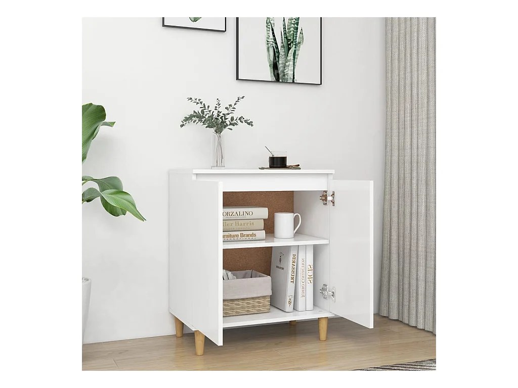 Sideboard Anrichte mit Massivholz-Beinen + Türen Weiß 60x35x70 cm Holzwerkstoff -RM62703