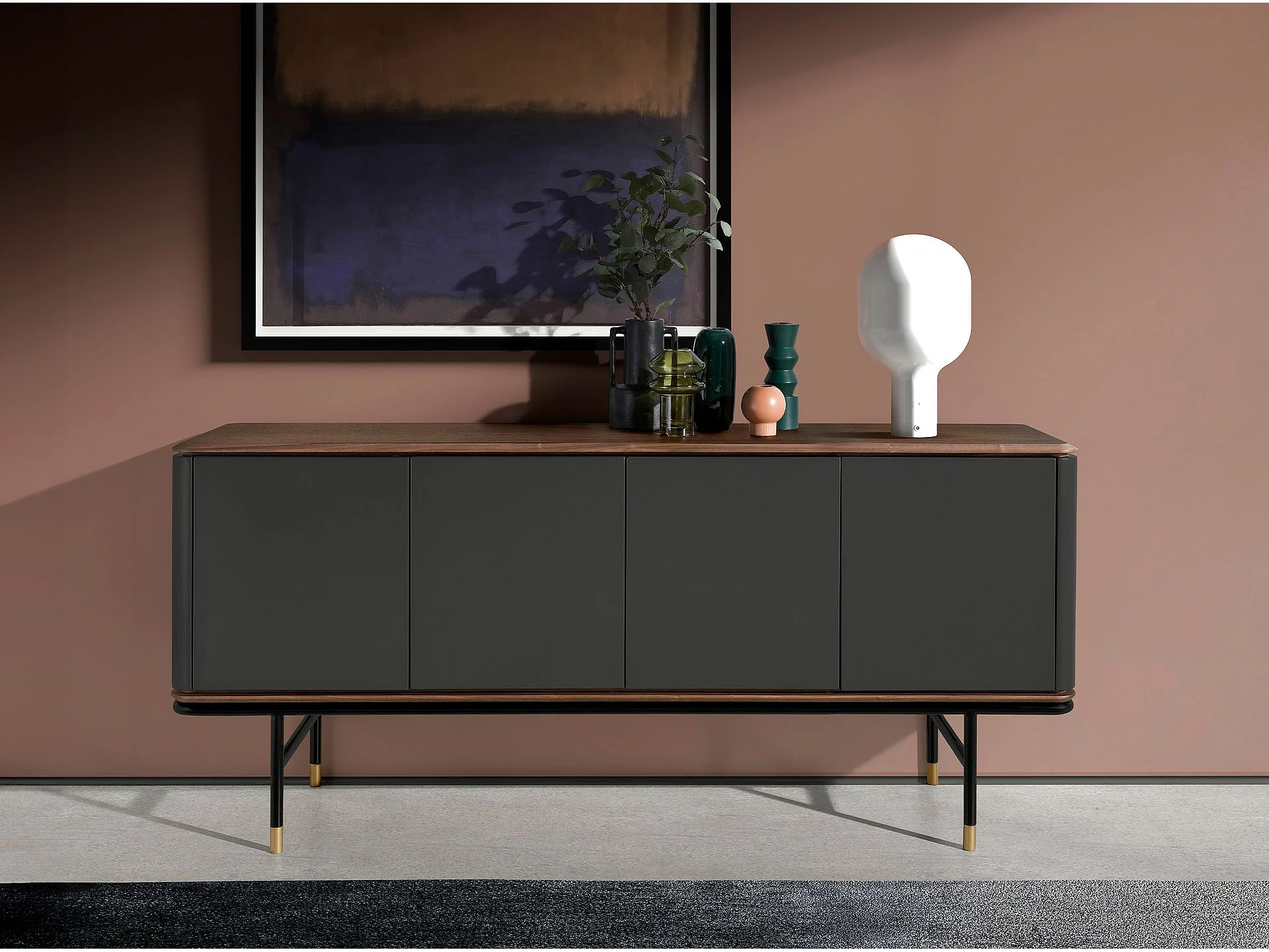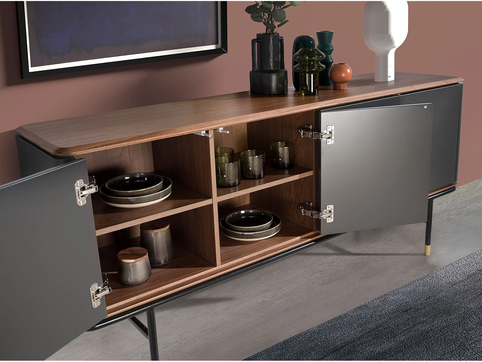 Sideboard aus dunkelgrauem Holz, schwarzem Stahl und Walnussplatte 3264 ANGEL CERDA