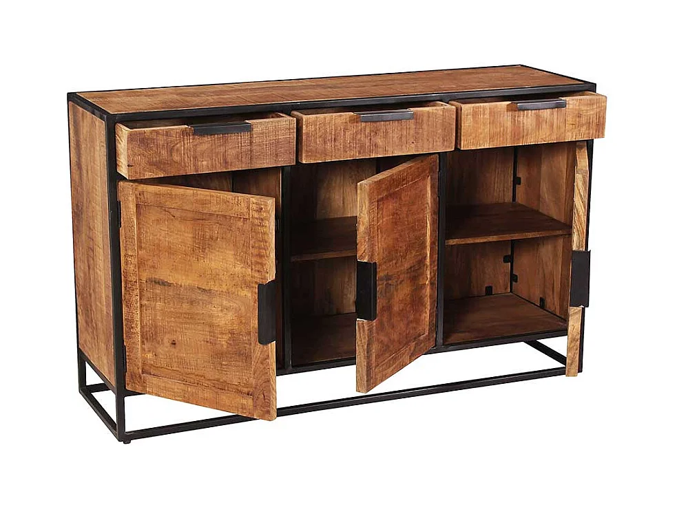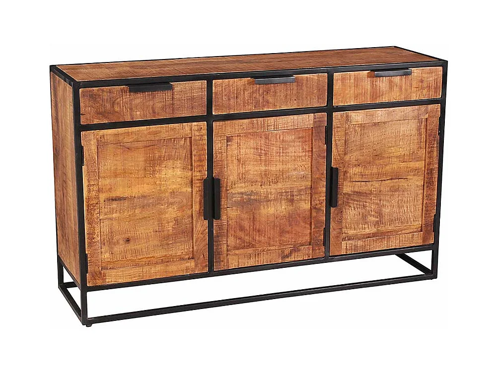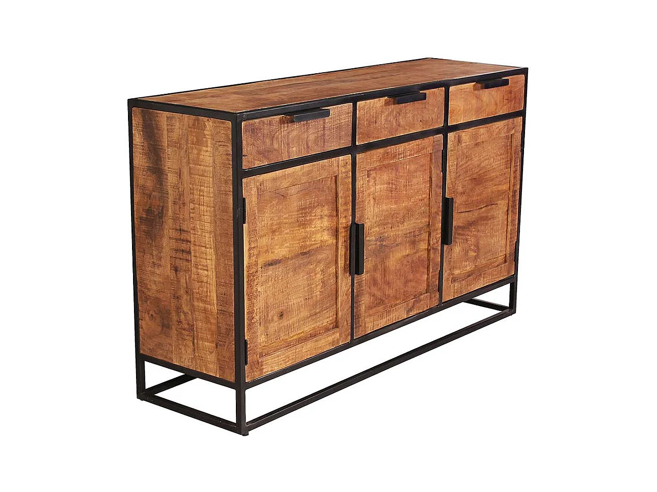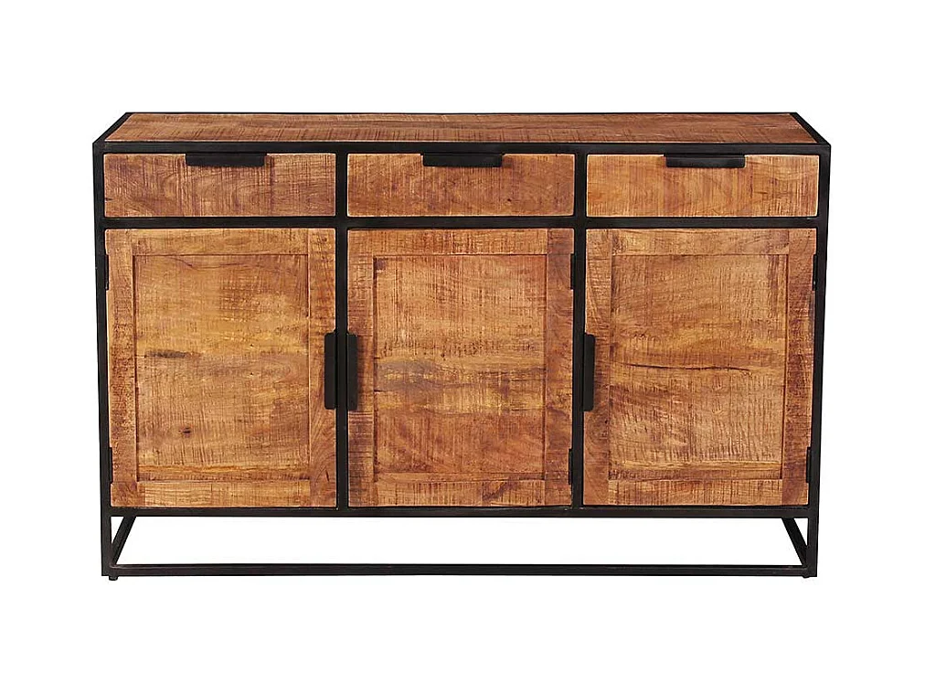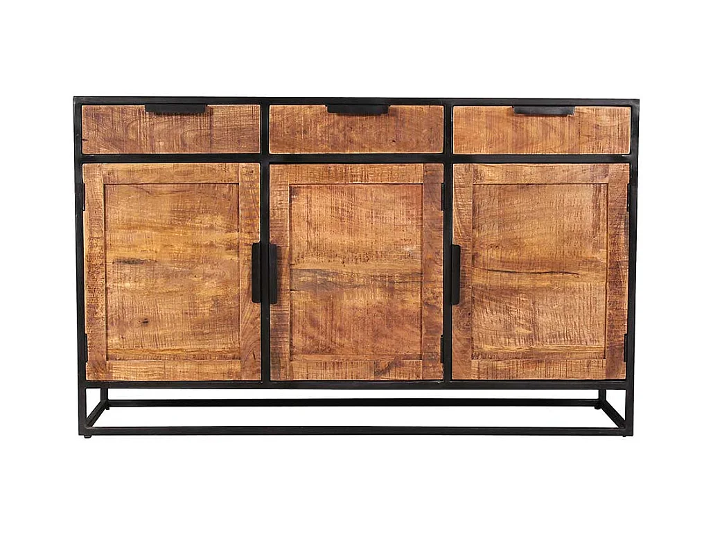 Sideboard aus Mangobaum Massivholz drei Schubladen und drei Türen
