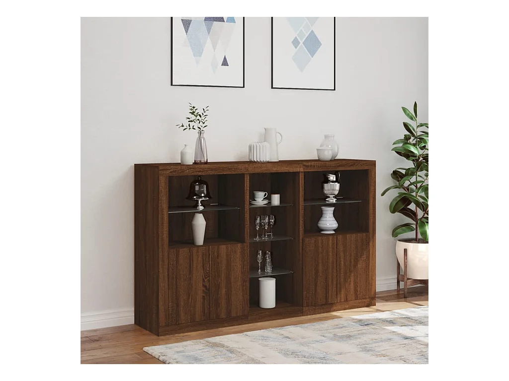 Sideboard Braun Anrichte mit LED-Leuchten Eichen-Optik 162x37x100 cm -RM47604