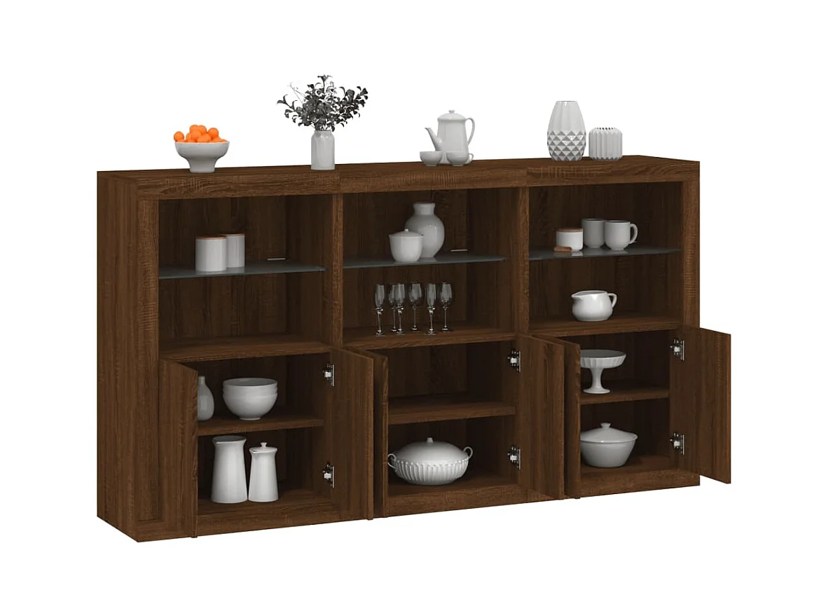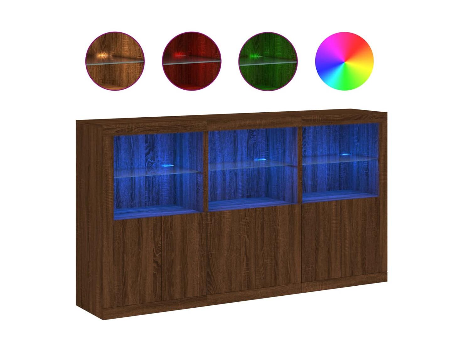 Sideboard Braun Anrichte mit LED-Leuchten Eichen-Optik 181,5x37x100 cm -RM58748