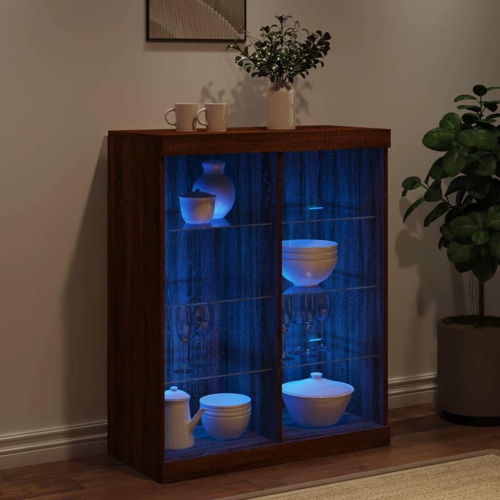 Sideboard Braun Anrichte mit LED-Leuchten Eichen-Optik 81x37x100 cm -RM10550
