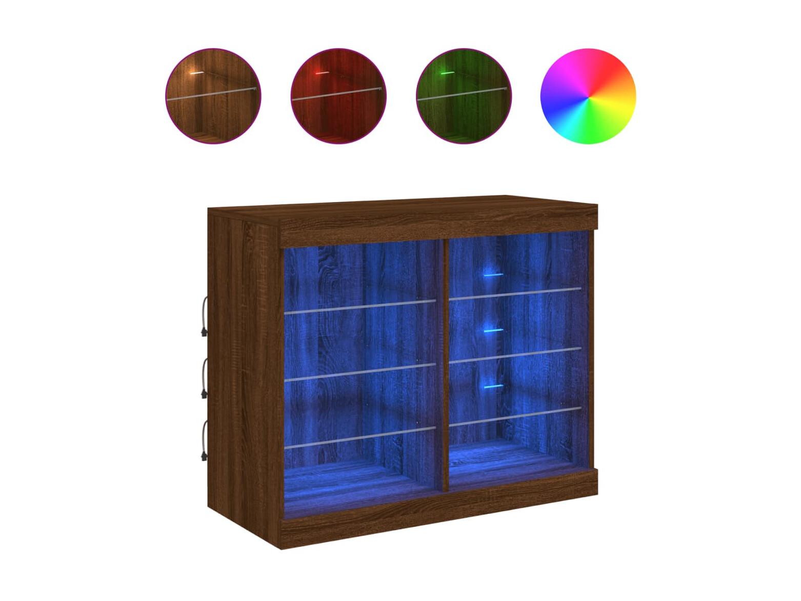 Sideboard Braun Anrichte mit LED-Leuchten Eichen-Optik 81x37x67 cm -RM97185