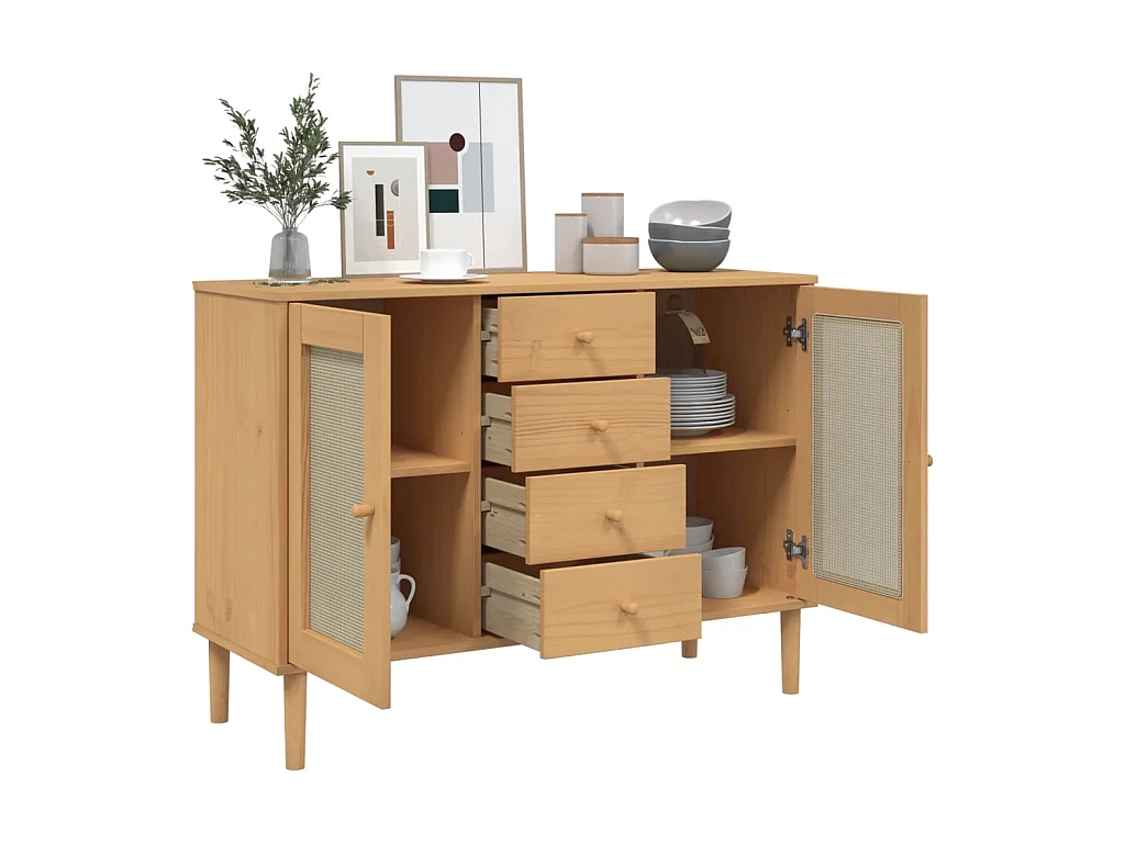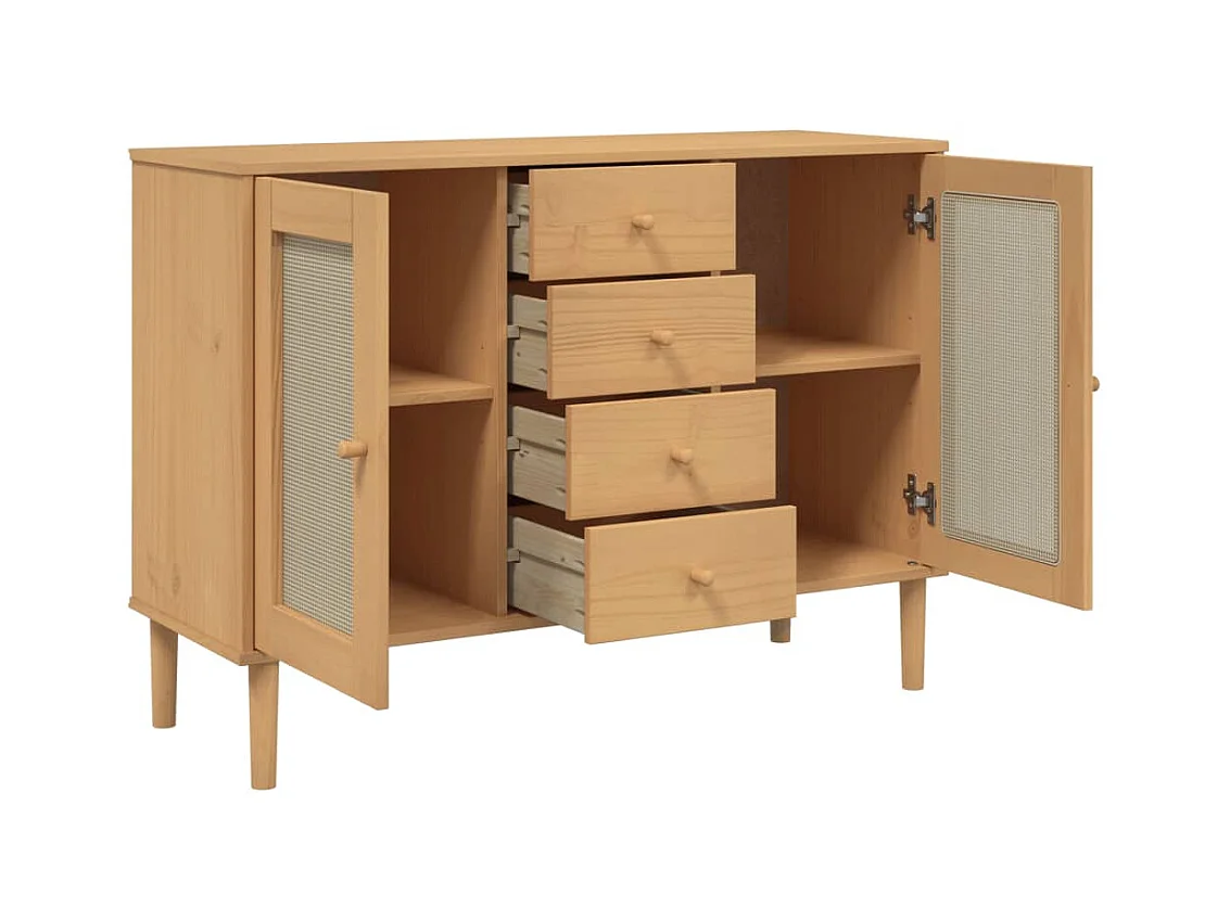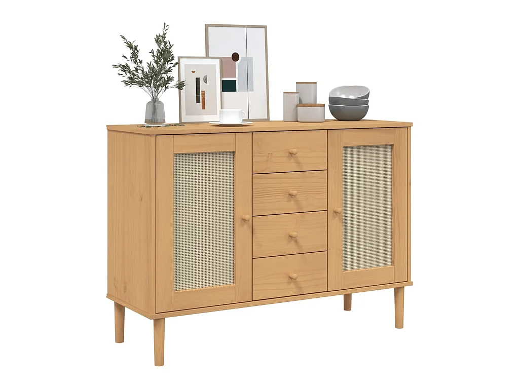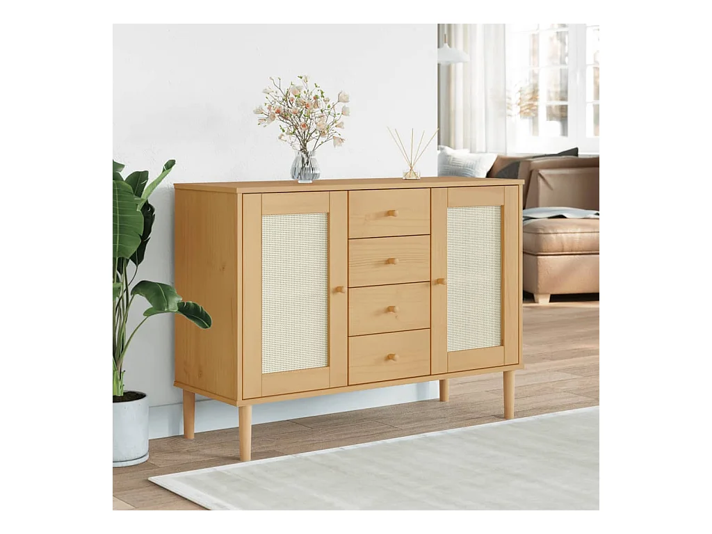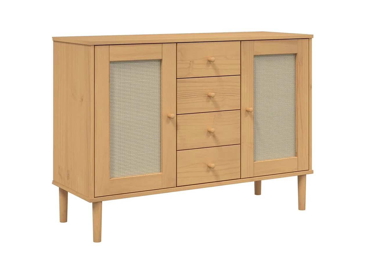 Sideboard Braun Anrichte SENJA Rattan-Optik 112x40x80 cm Kiefernholz -RM79574