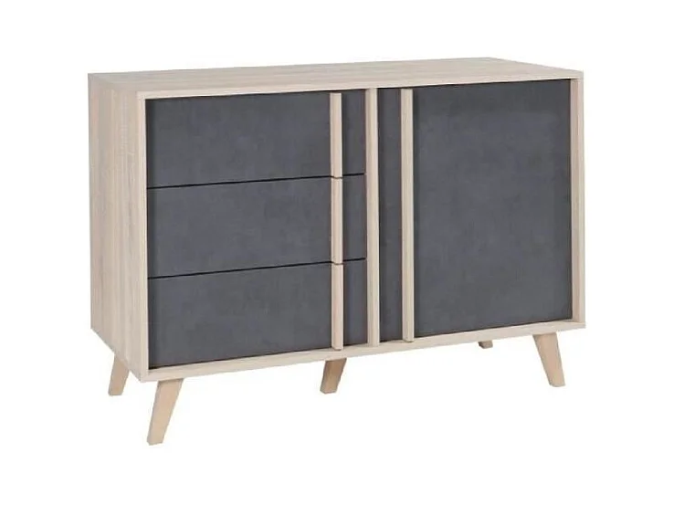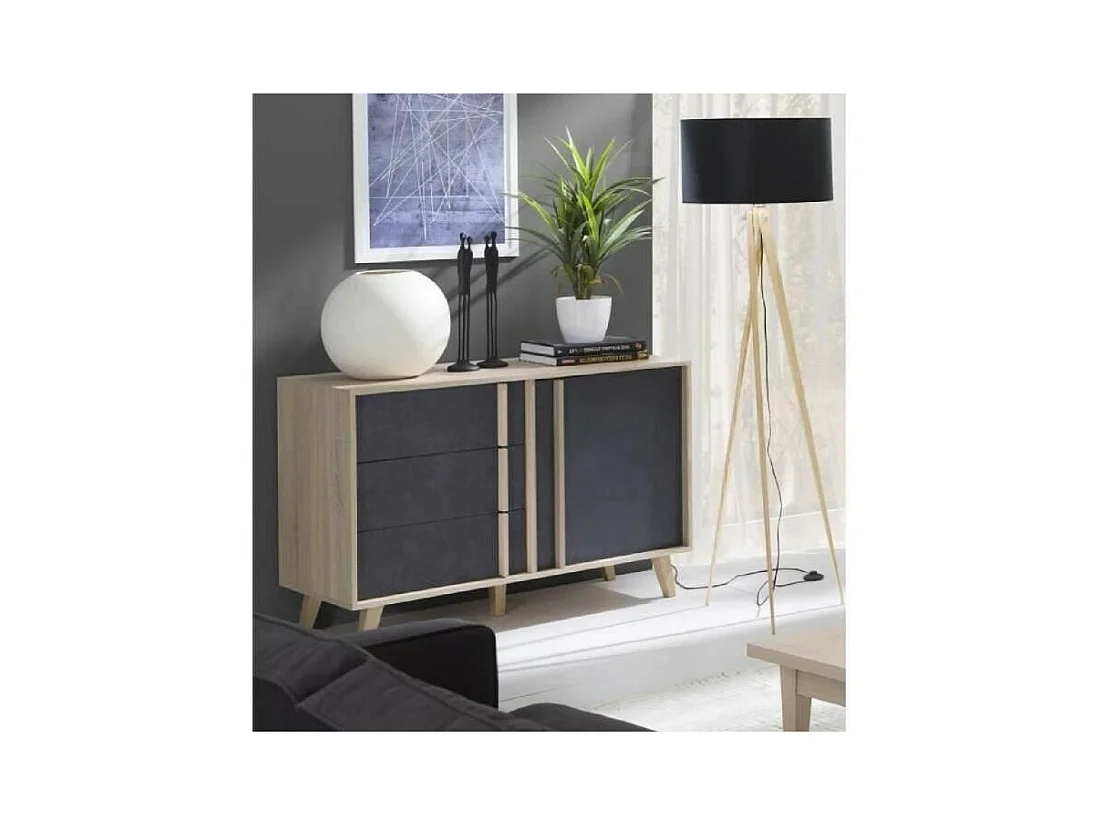 Sideboard BUFFET klein Modell MALMÖ helles Eichenholz und Betongrau