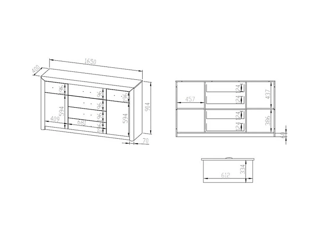 SIDEBOARD Castel Sonoma Eiche hell / Sonoma Eiche Trüffel 165 / 43 / 94cm