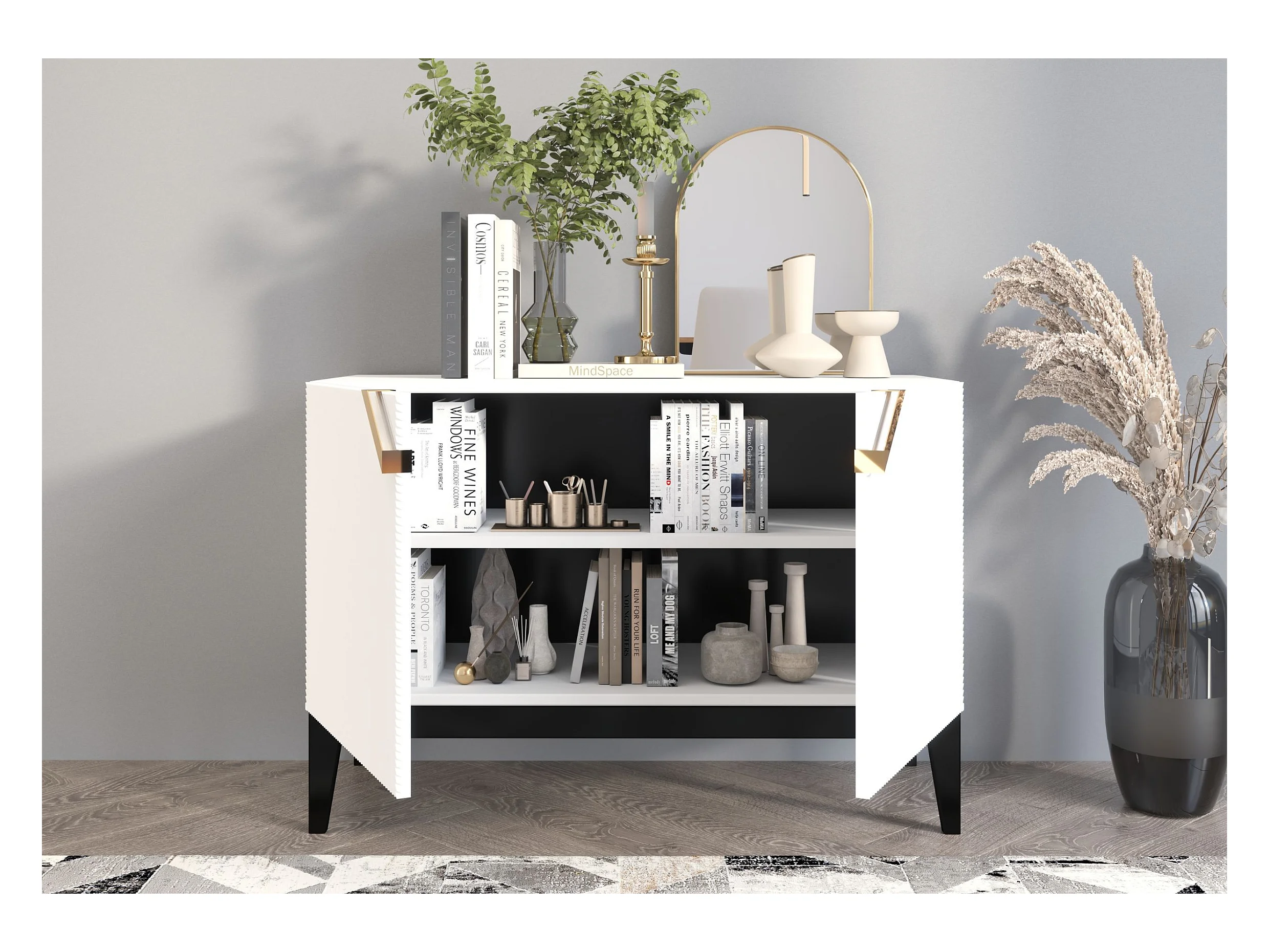 Sideboard Demi 2d long, weiß-schwarz-gold, mit gefrästen fronten, massive buche