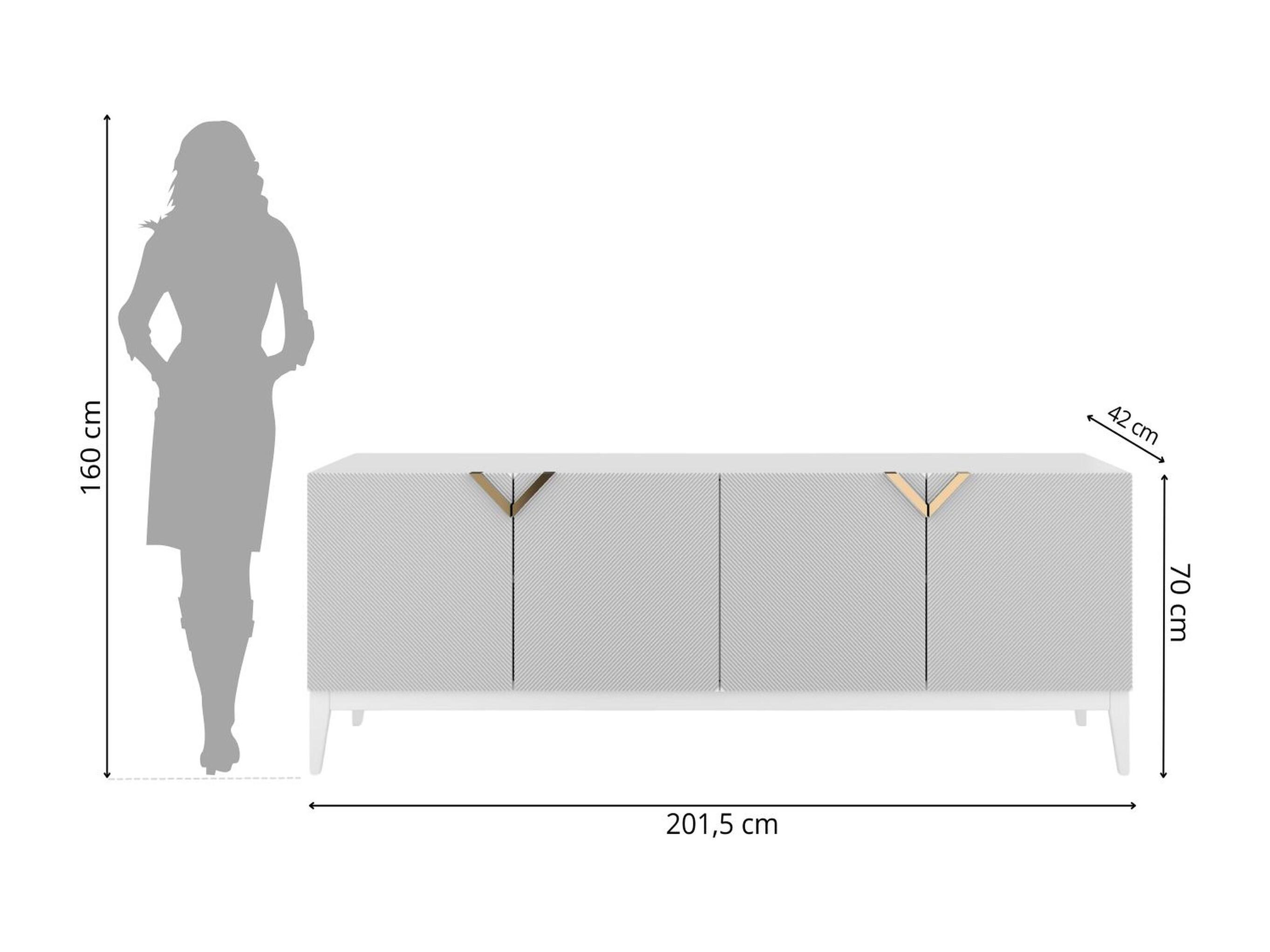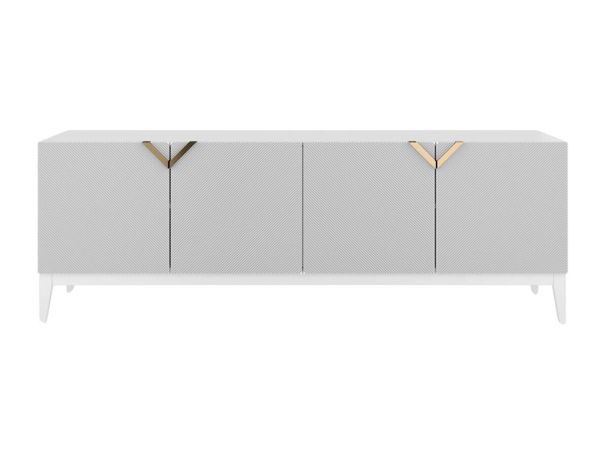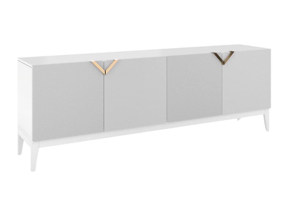Sideboard Demi long, weiß-gold, mit gefrästen fronten, massive buche