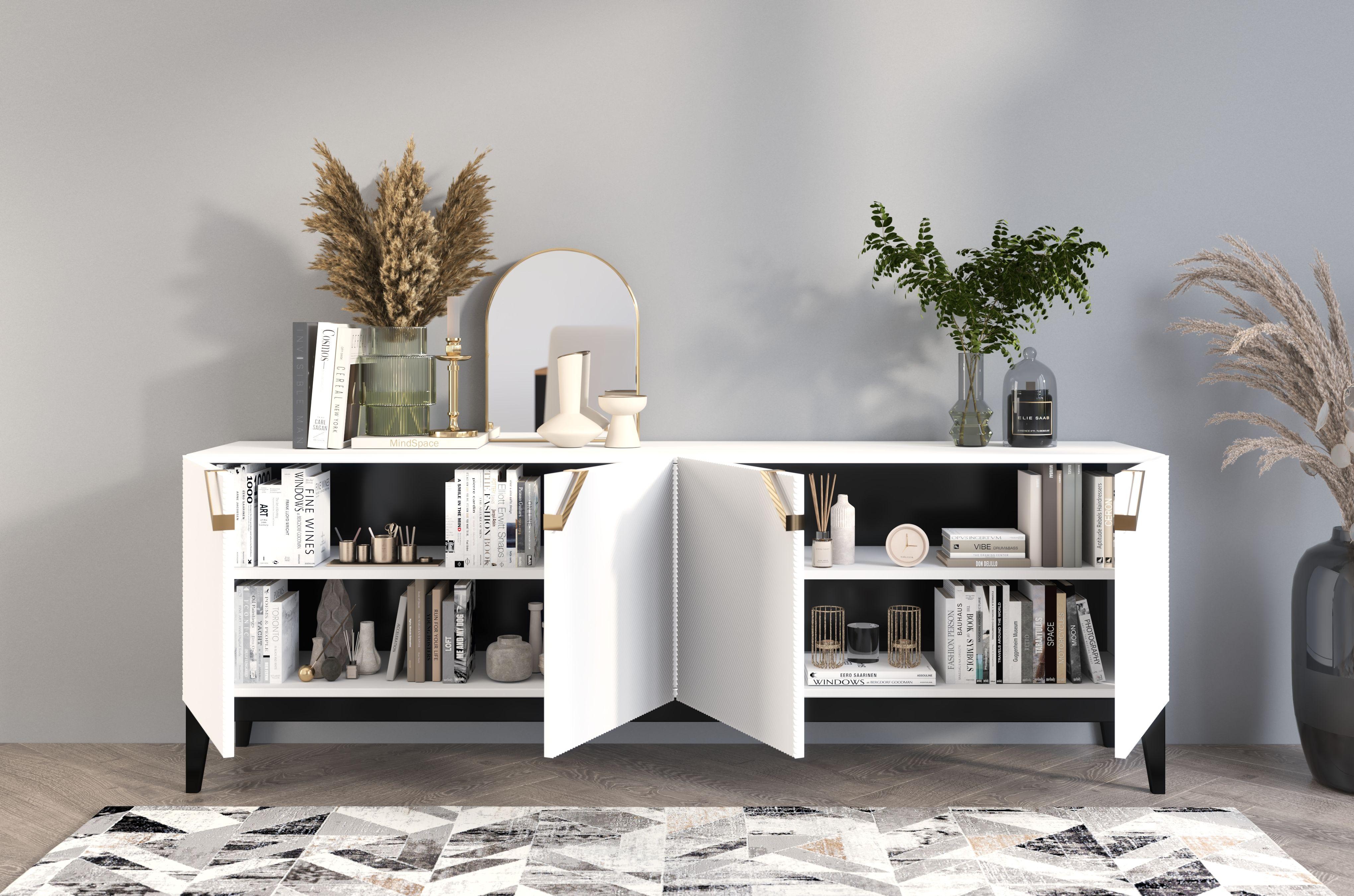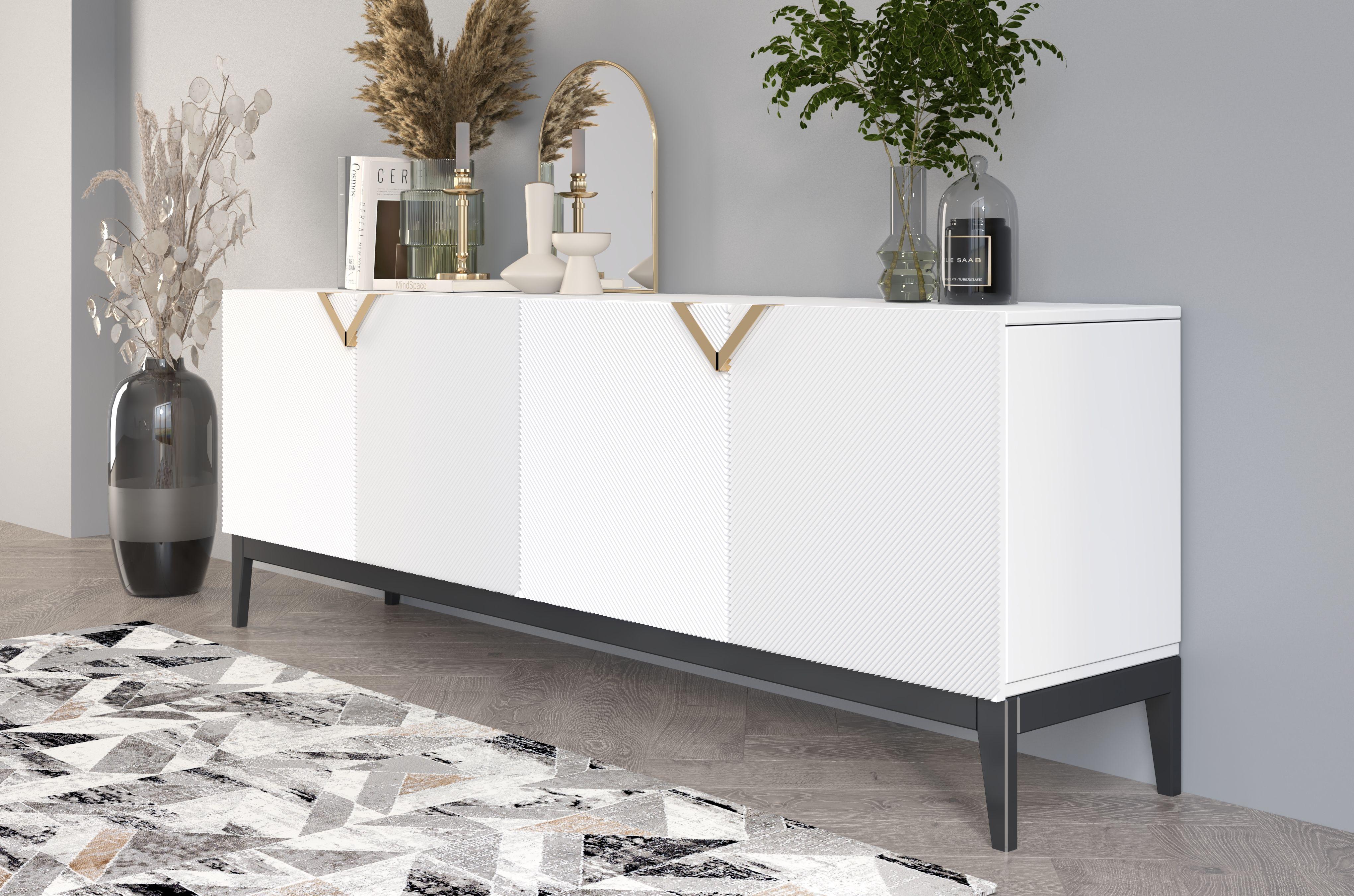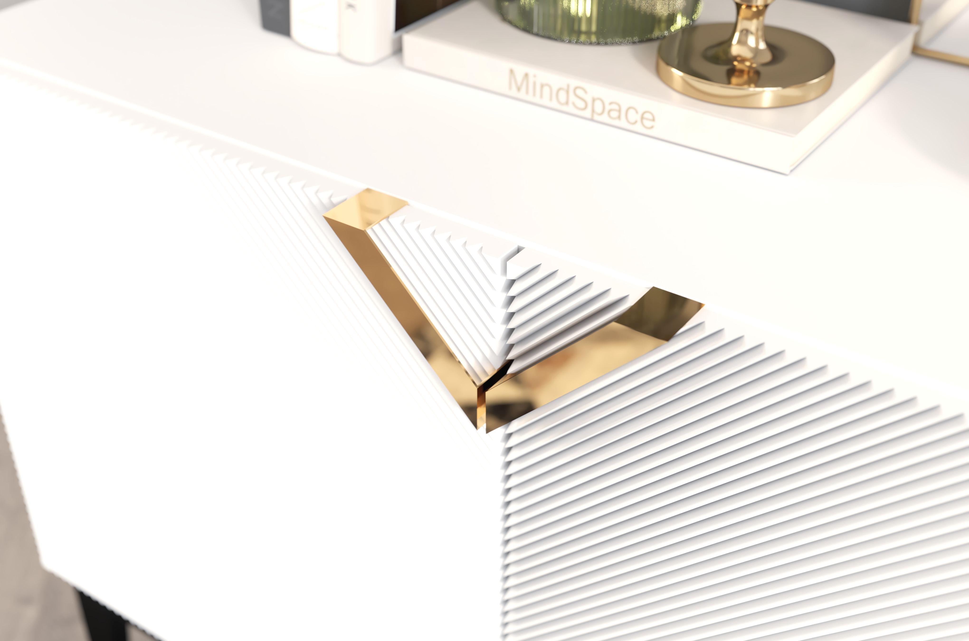 Sideboard Demi long, weiß-schwarz-gold, mit gefrästen fronten, massive buche