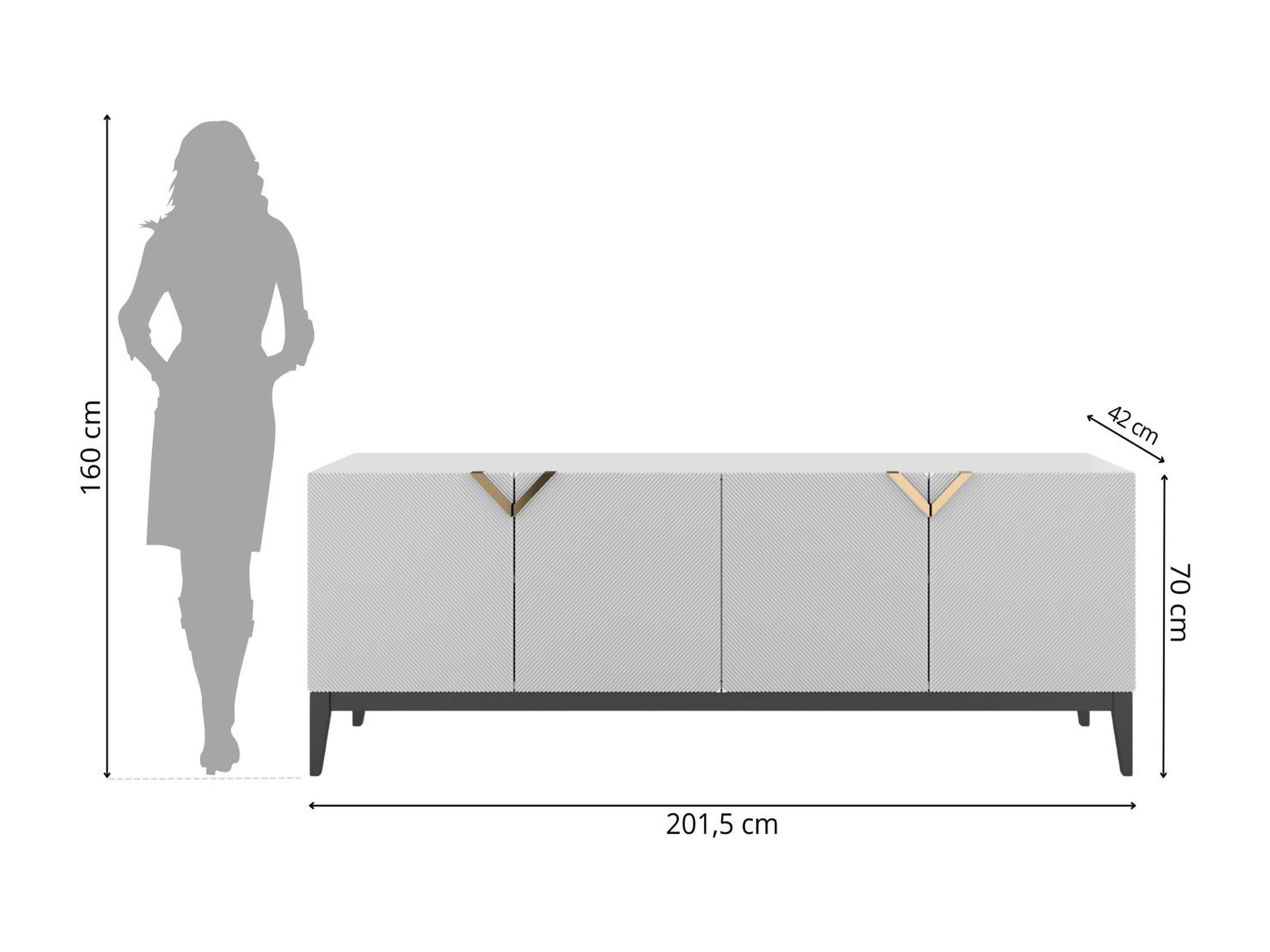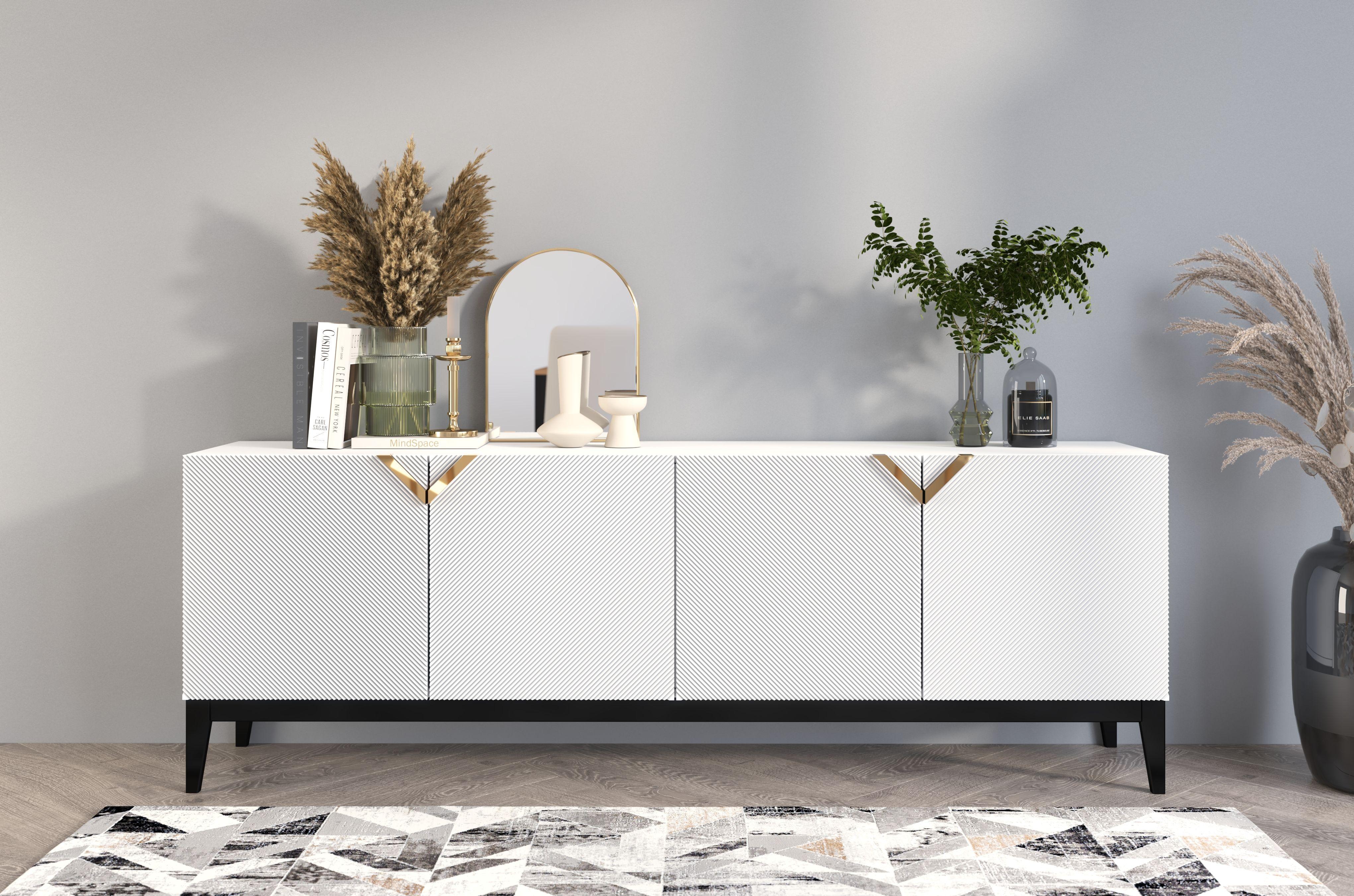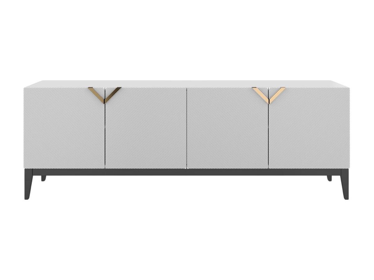 Sideboard Demi long, weiß-schwarz-gold, mit gefrästen fronten, massive buche