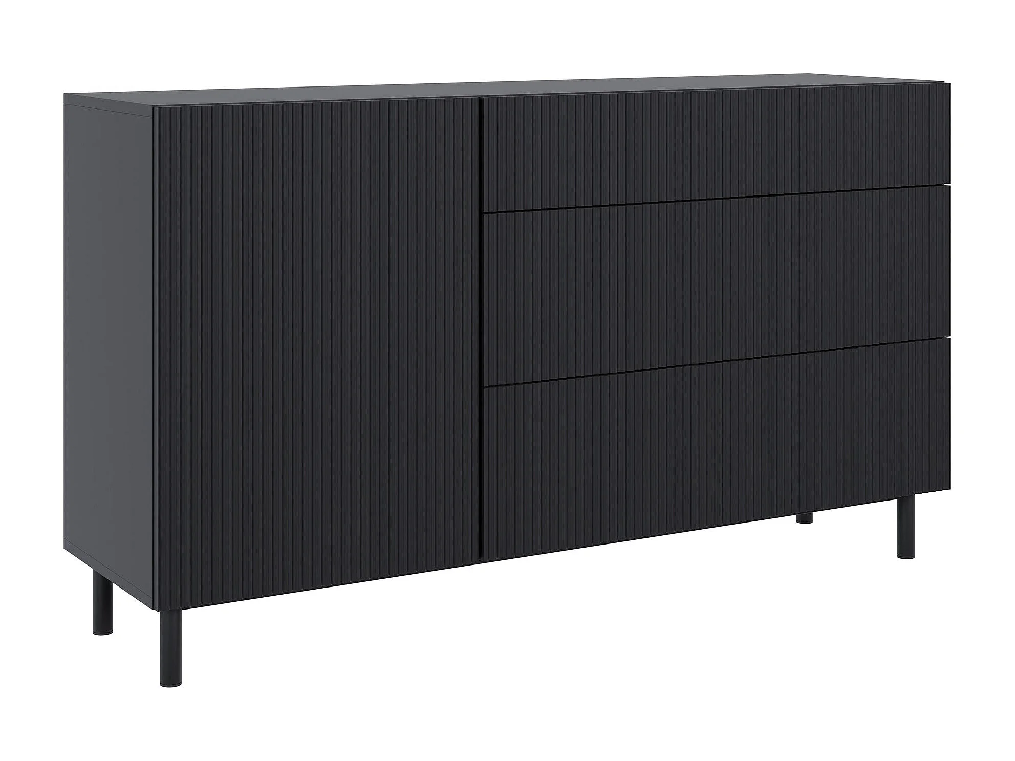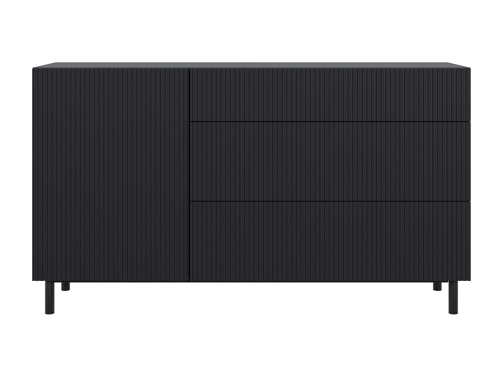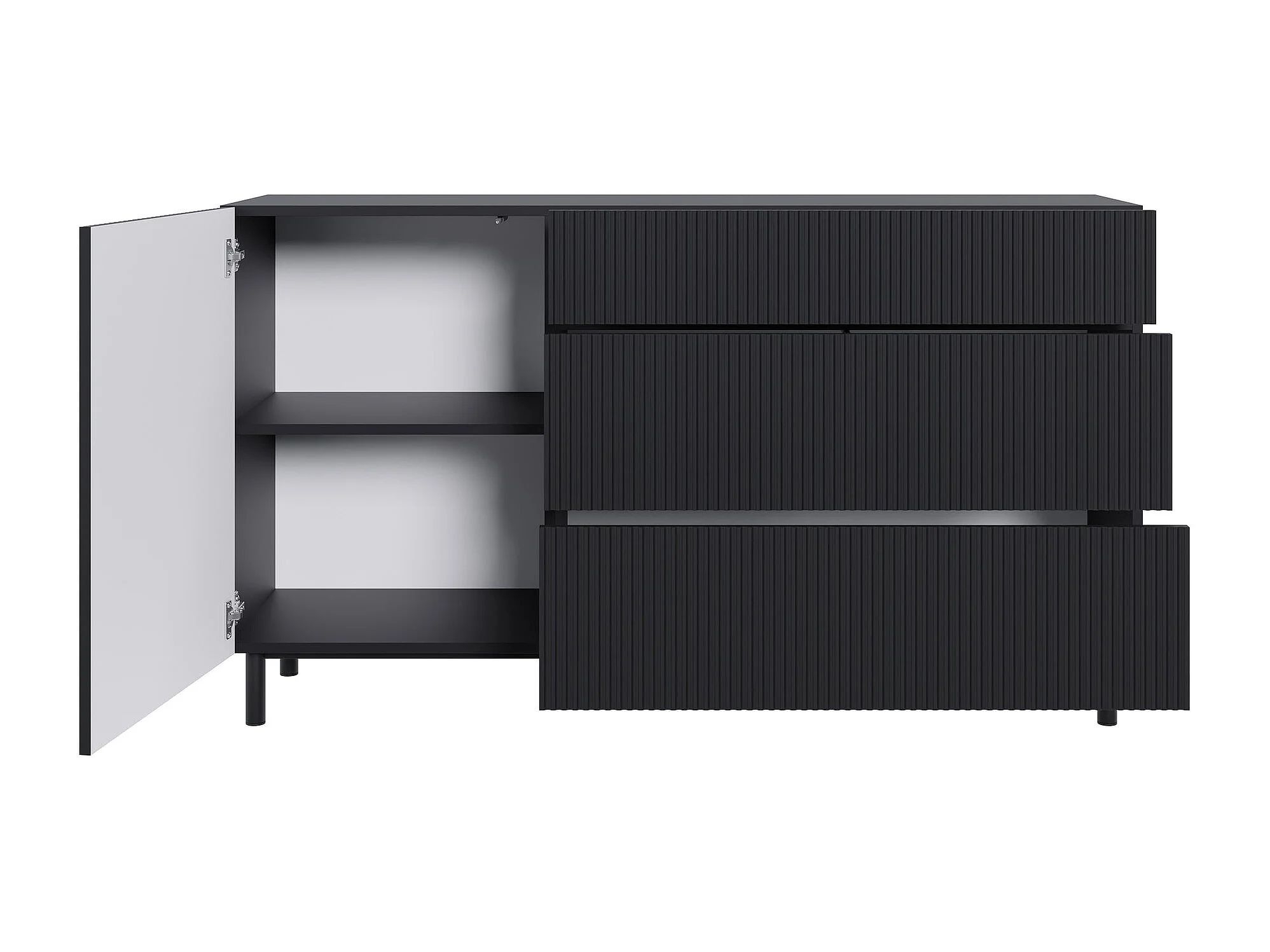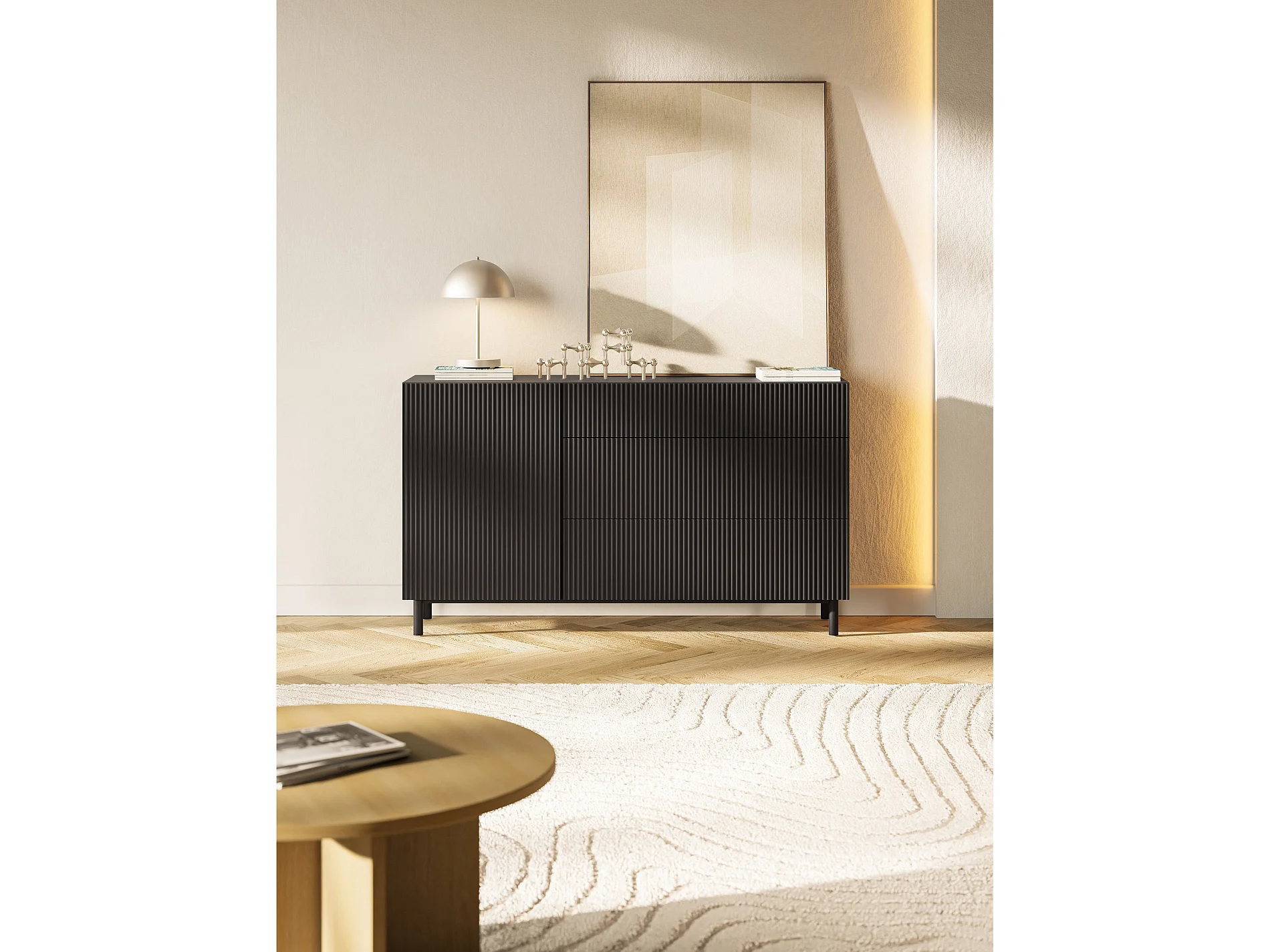 Sideboard eintürig mit Rillenfront und 3 Schubladen – Schwarz – 140 cm – VELDIO NEW