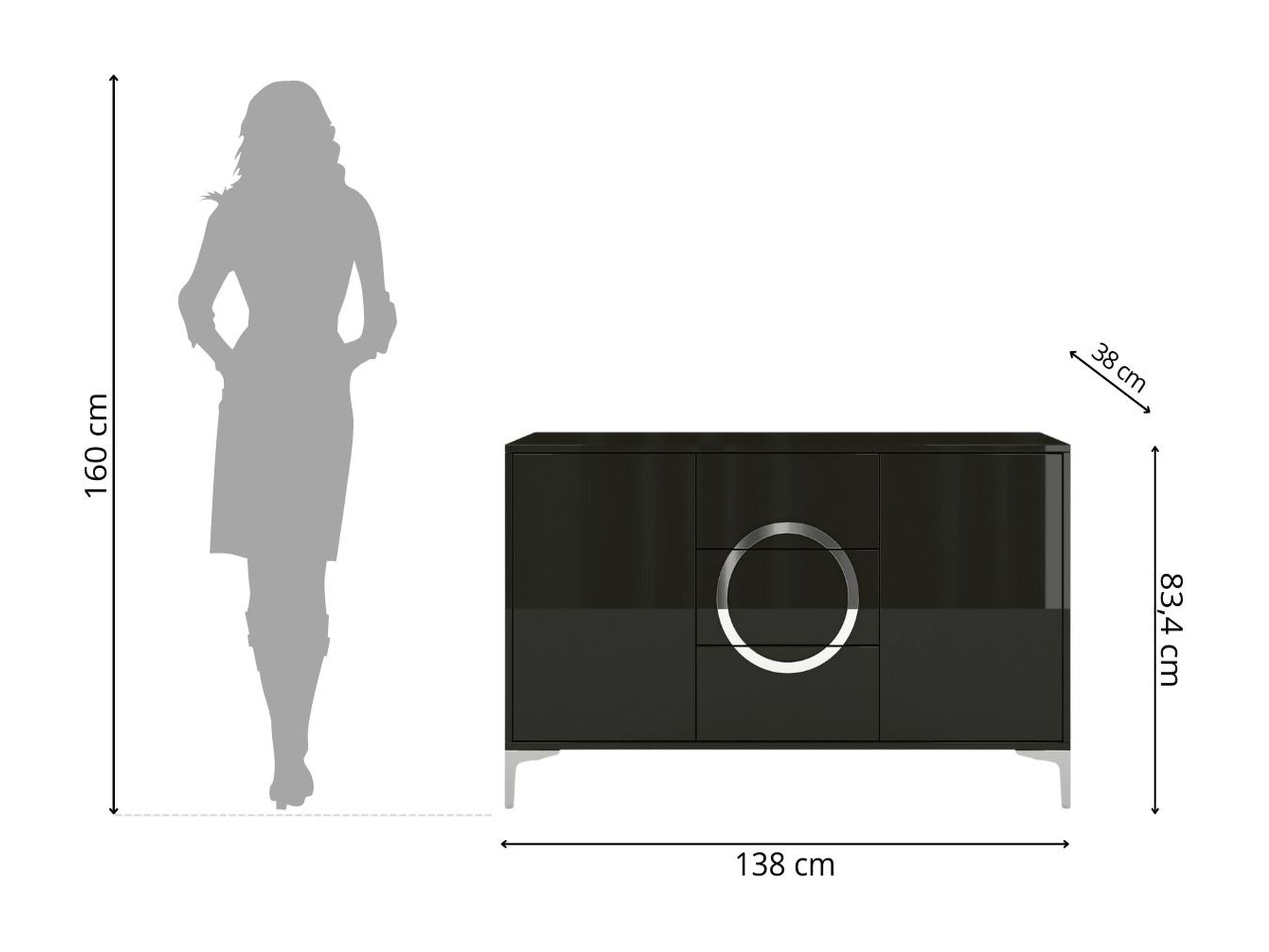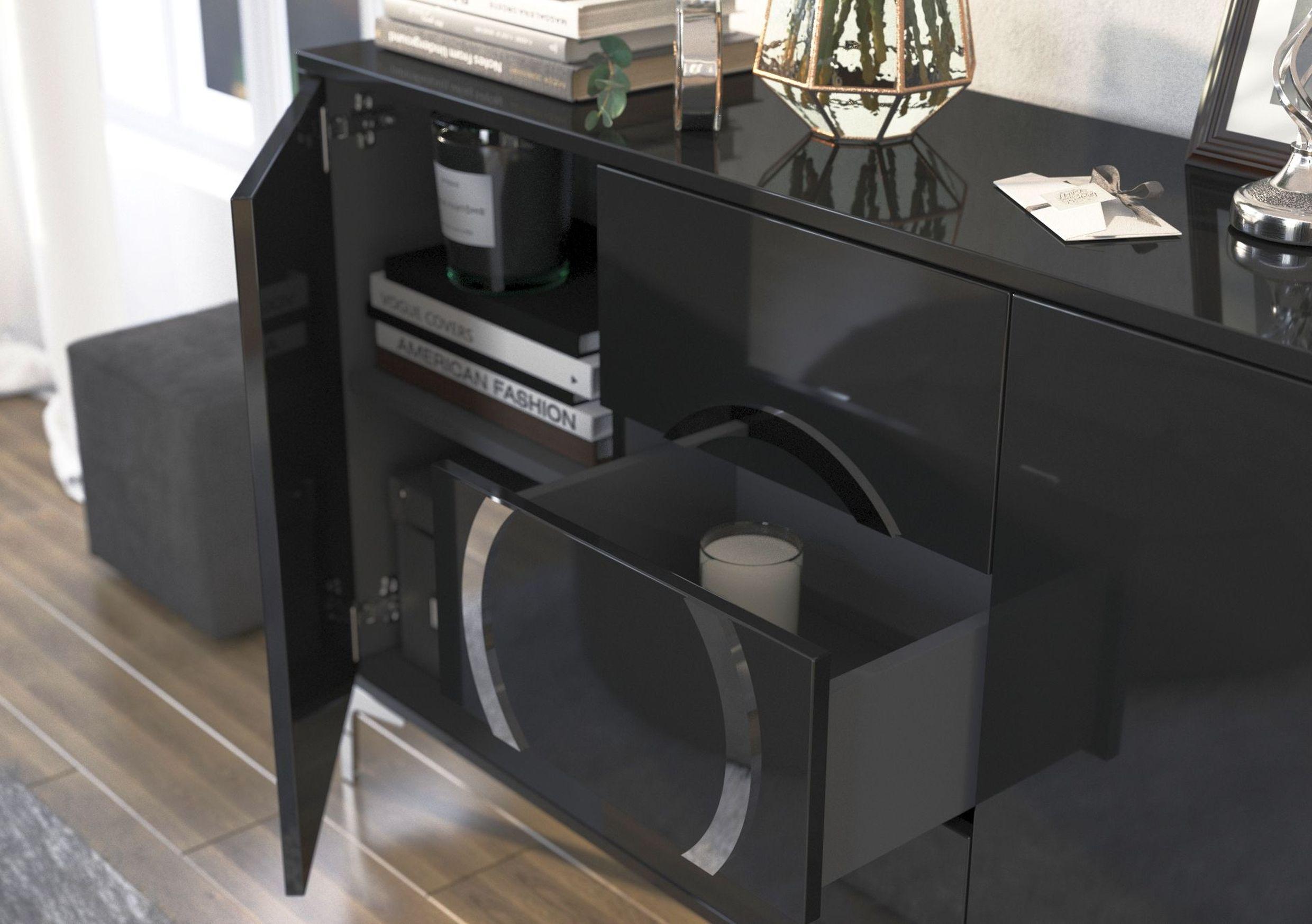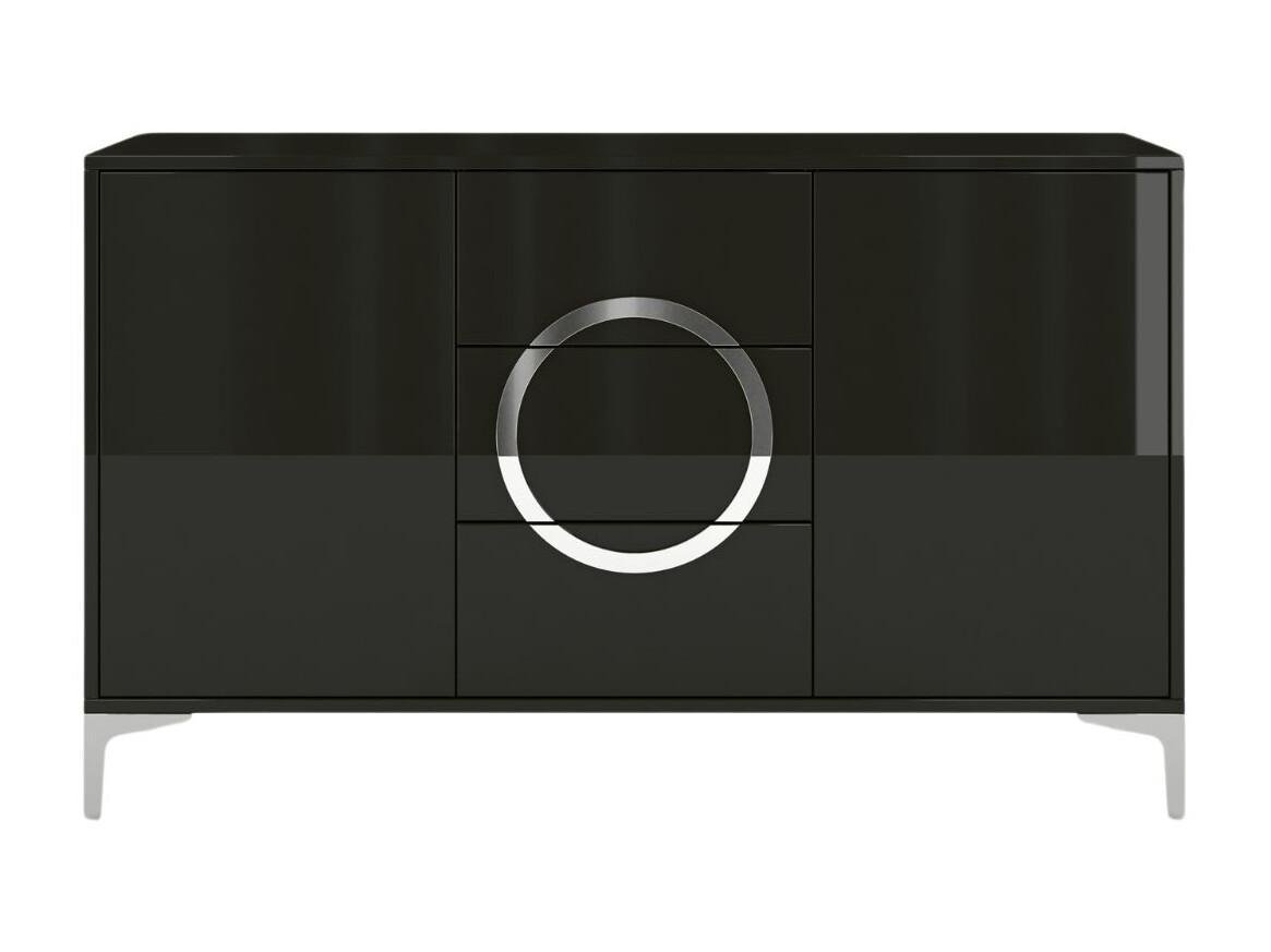Sideboard Eva, schwarz, silberne akzente, hochglanz
