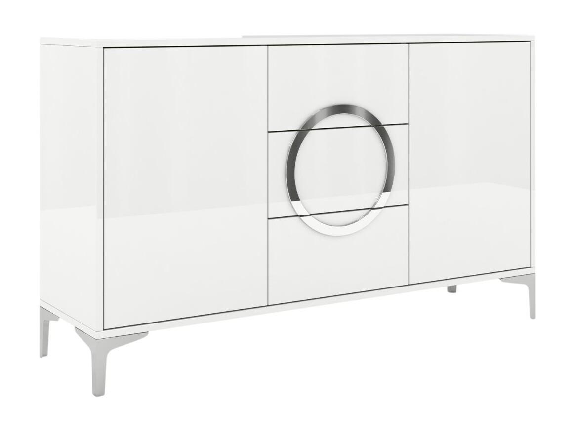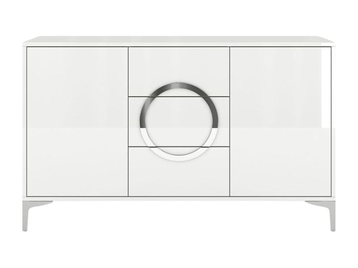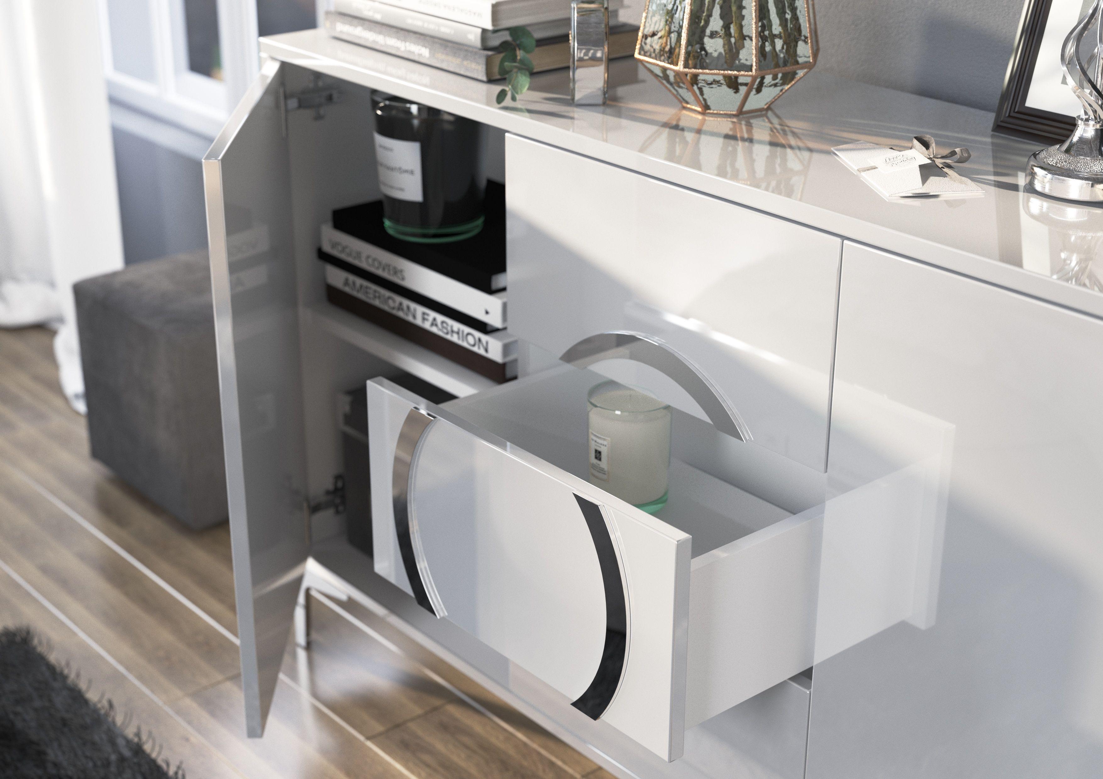 Sideboard Eva, Weiß, Silberne Akzente, Hochglanz