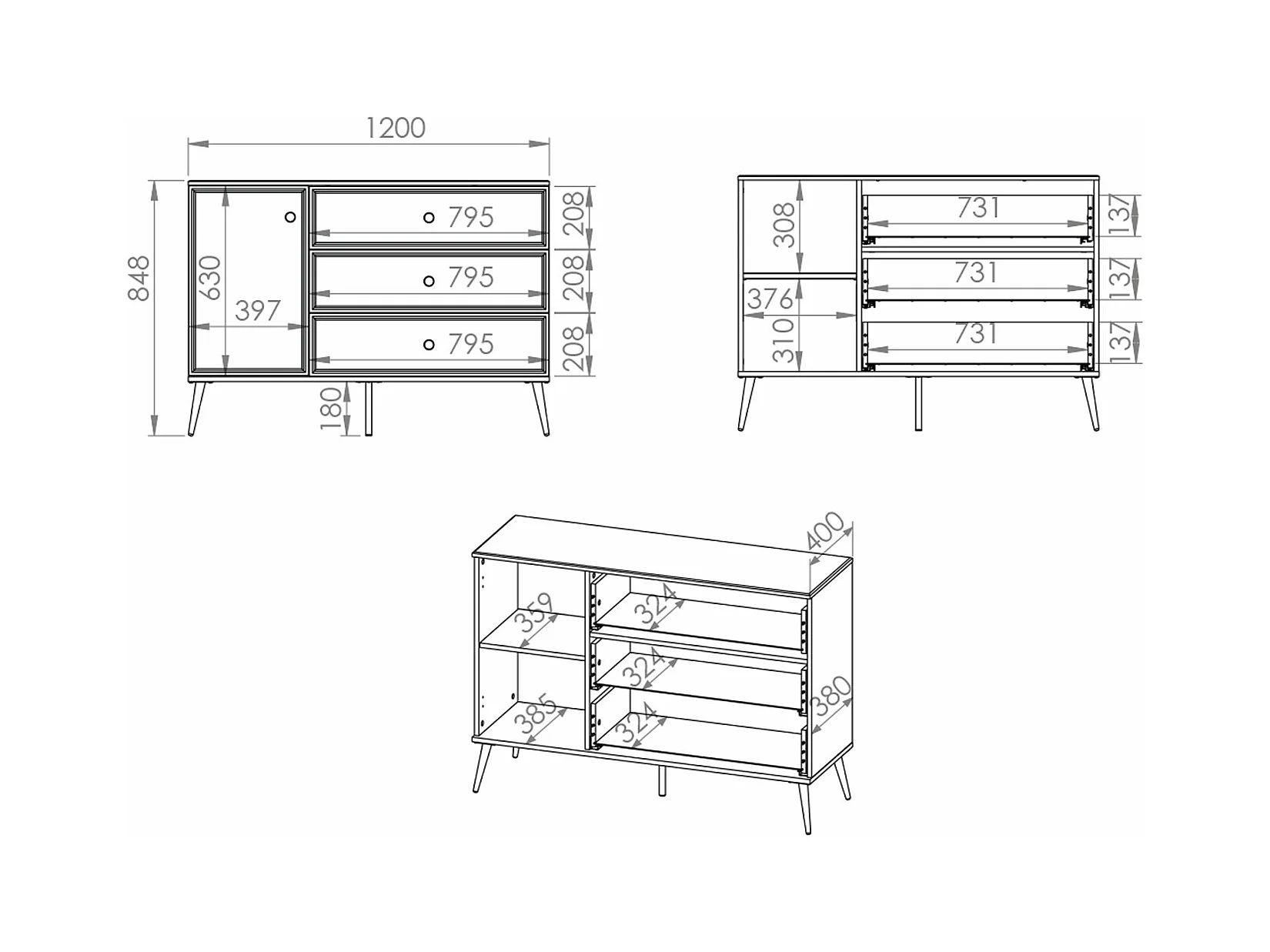 SIDEBOARD Goldin weiß / weiß hochglanz /gold 120 / 40 / 85cm