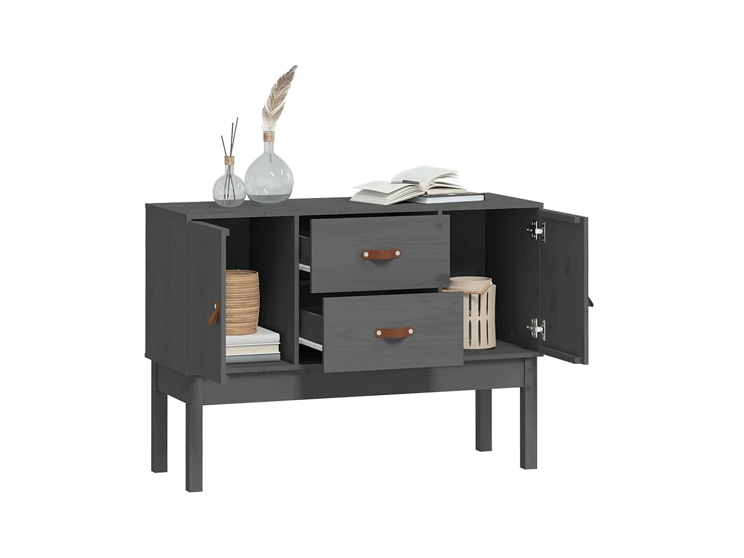 Sideboard Grau - Lowboard 110x40x78 cm Massivholz Kiefer -RM88343