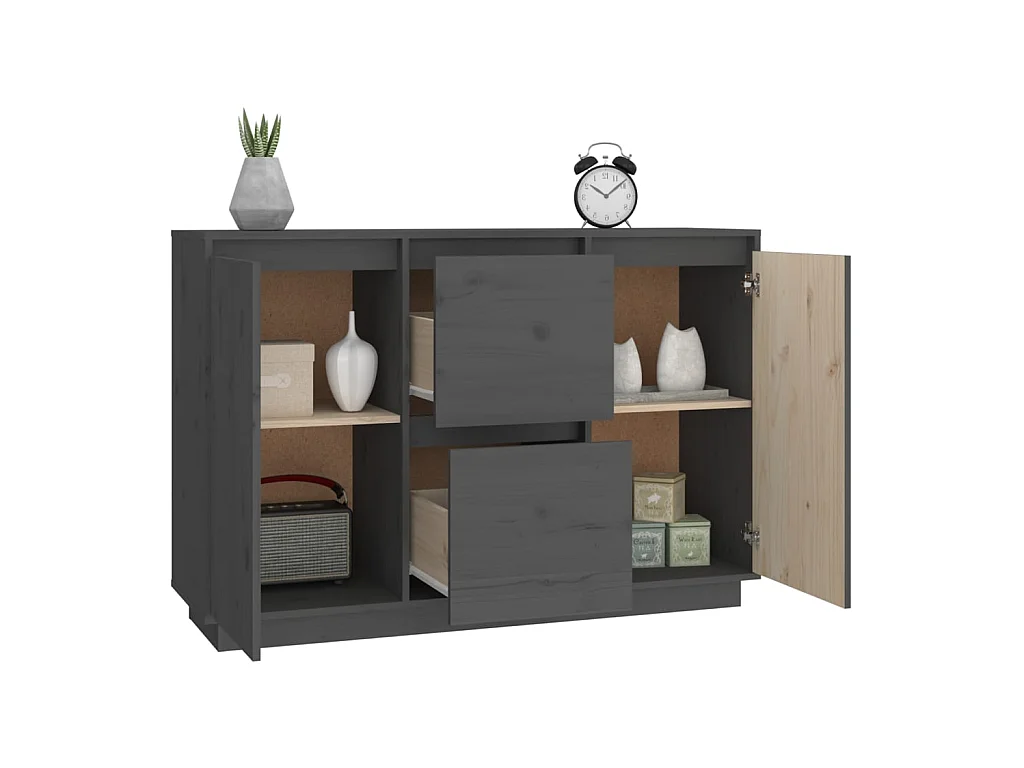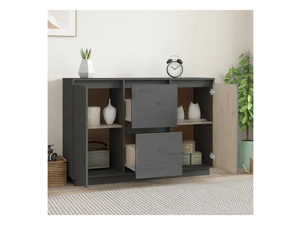 Sideboard Grau - Lowboard 111x34x75 cm Massivholz Kiefer -RM48267